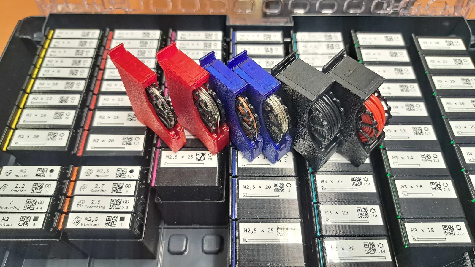 - Các tùy chọn khác (như Gridfinity) rất tuyệt, nhưng các bộ phận nhỏ vẫn bị tràn ra ngoài, và các hộp đựng bên ngoài đòi hỏi bản in lớn, tốn thời gian, ngay cả khi chúng vừa với bàn in.