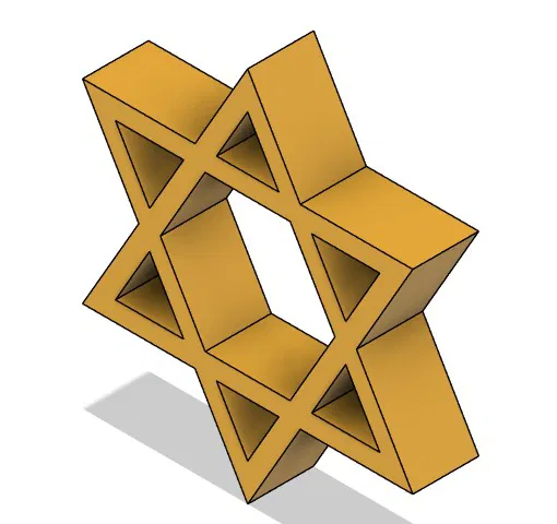 Mô hình Ngôi Sao David (Etoile de David) dùng để trang trí. File F3d có sẵn cho bạn tùy chỉnh. Thông số in chi tiết cho máy COREONE với sợi nhựa PLA, bao gồm nhiệt độ, đường kính đầu phun, chiều cao lớp, và vật liệu đế đỡ.