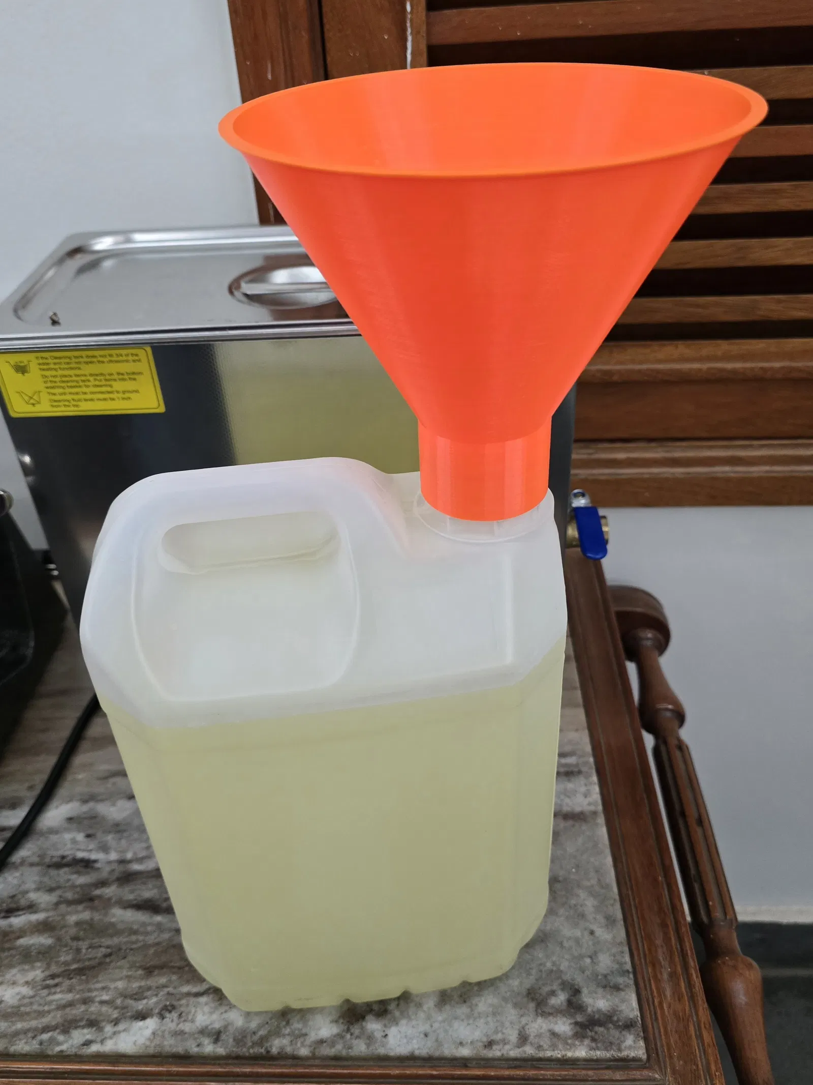 Phễu cho bình nhựa 5 lít có ren 42 x 4mm. In bằng PETG với độ dày lớp 0.16, 4 lớp tường và độ đặc ruột 30%.