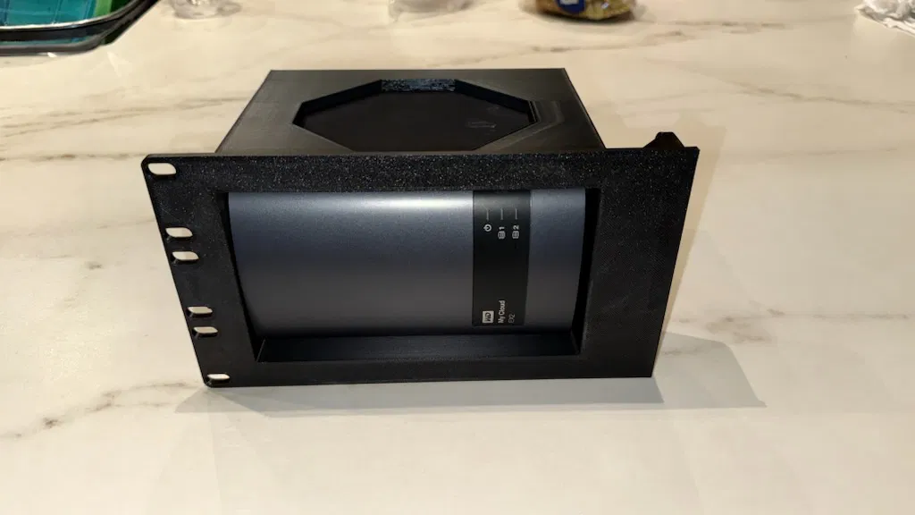 Giá đỡ tủ rack 19 inch 3U này được thiết kế riêng cho WD my cloud Ex2, giúp bạn dễ dàng lắp đặt thiết bị của mình vào hệ thống tủ rack tại nhà. Cần khoảng 6 ốc M5 và 6 đai ốc M5, in với 25% infill trở lên và không cần support. Rất lý tưởng cho homelab hoặc server gia đình.