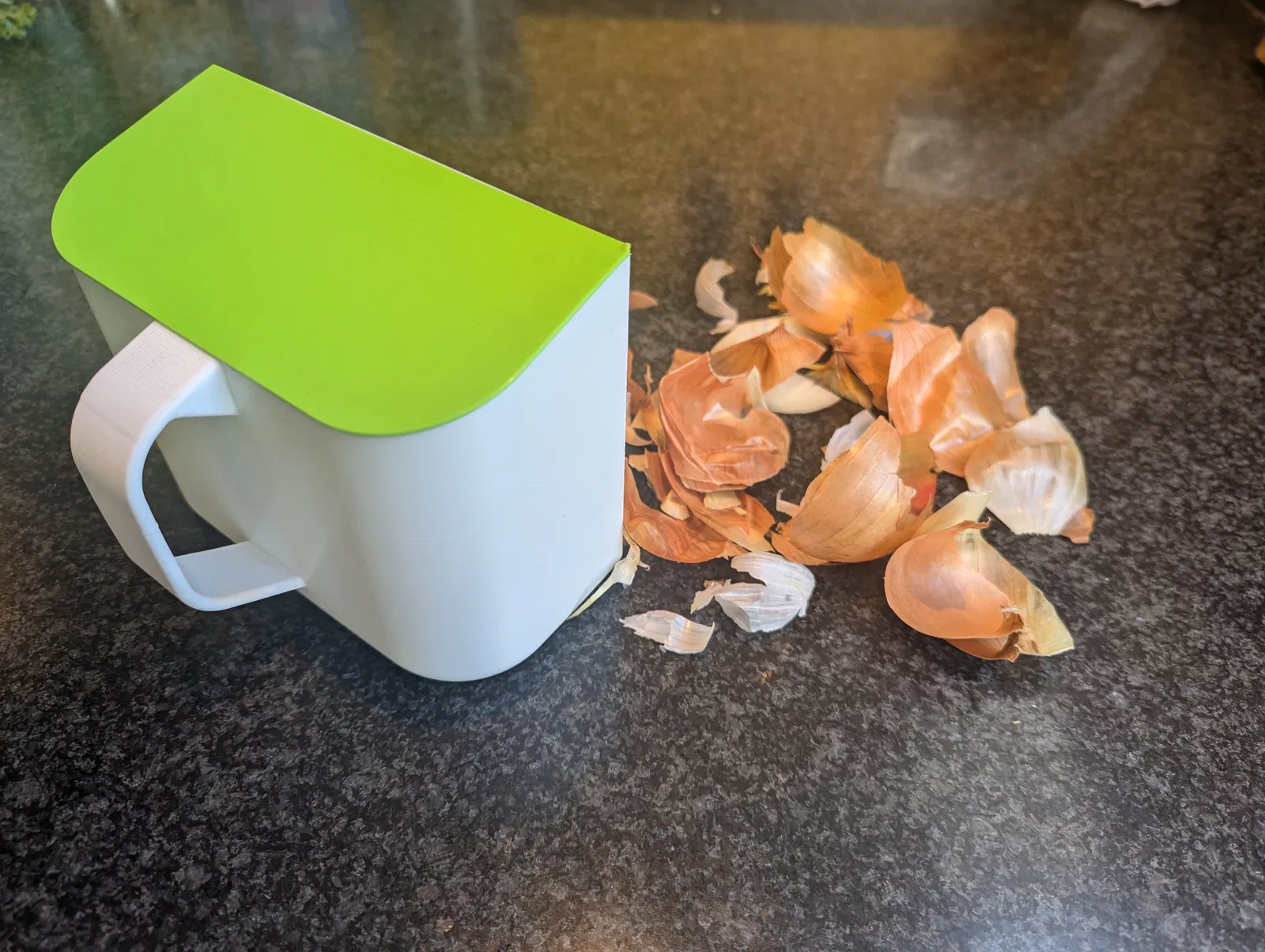 Một cái hũ nhỏ xinh để dọn dẹp vụn rác nhà bếp, có nắp giúp bạn gom sạch sẽ. Chất liệu in PLA mỏng nhẹ, dễ in không cần support, rất tiện lợi cho việc ủ phân compost.