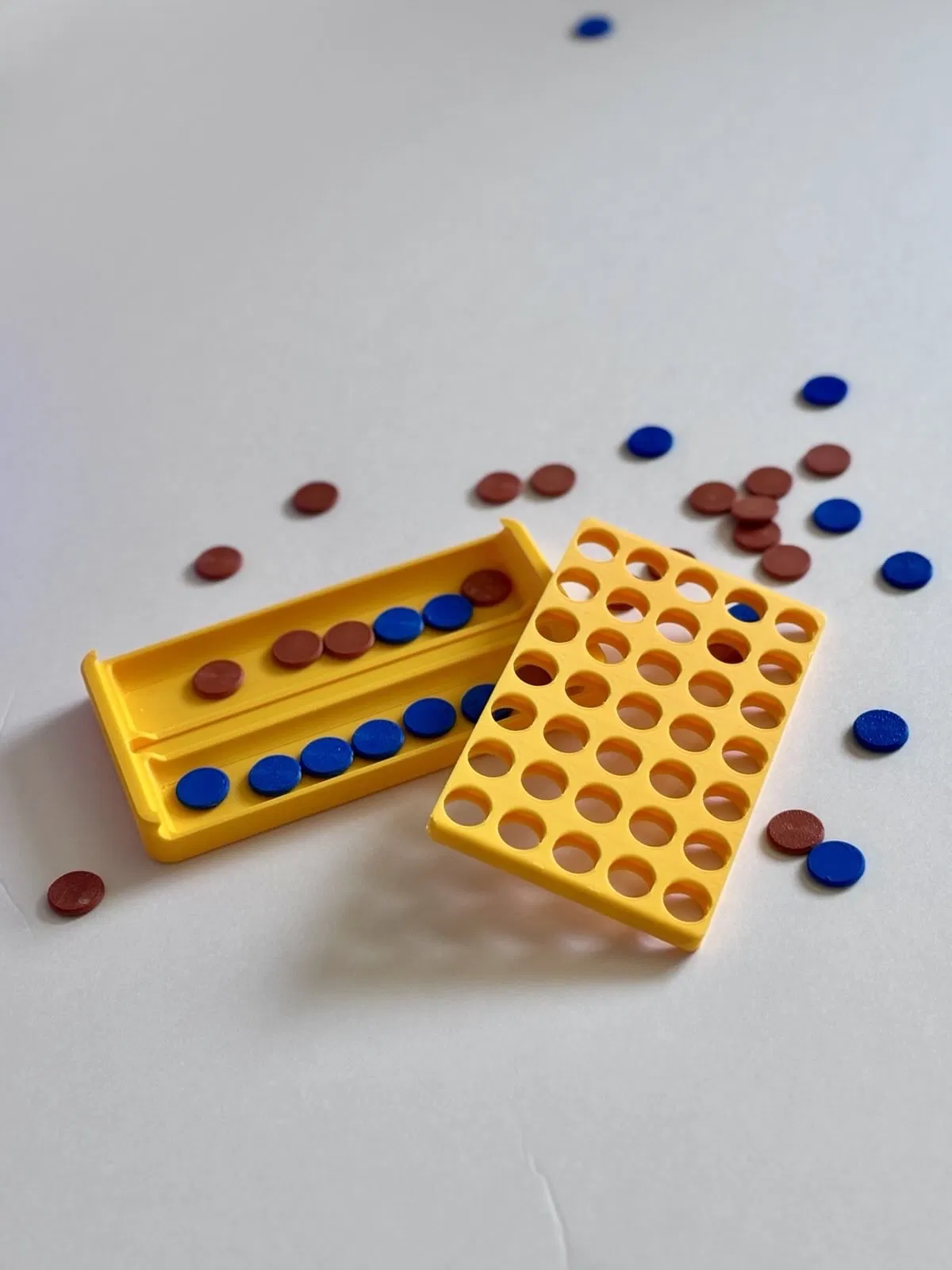 Chơi Connect 4 siêu tiện mang đi! In không cần trụ đỡ, khung in liền một khối kiêm luôn nắp, không cần keo hay lắp ghép. Chỉ cần in và chơi thôi!