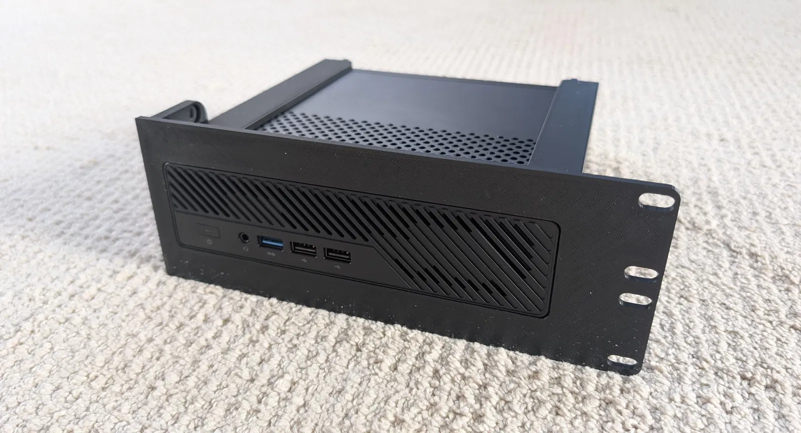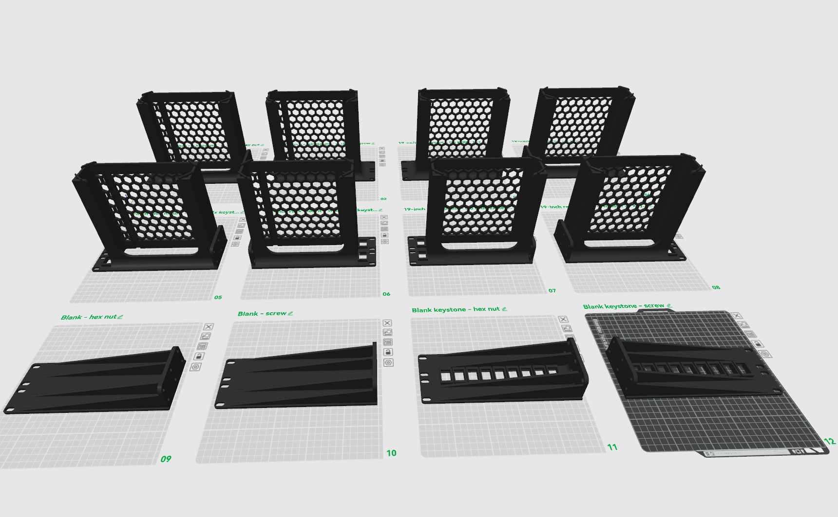 Giá đỡ rack 19 inch 2U dành cho Minisforum ms-01. Có nhiều phiên bản: không có khe trượt, có khe trượt, có thêm 2 cổng keystone. Phù hợp cho homelab, server rack. In bằng PETG để chịu nhiệt tốt. Bao gồm cả ốc vít và đai ốc. Ủng hộ tác giả bằng cách mua bia nhé!