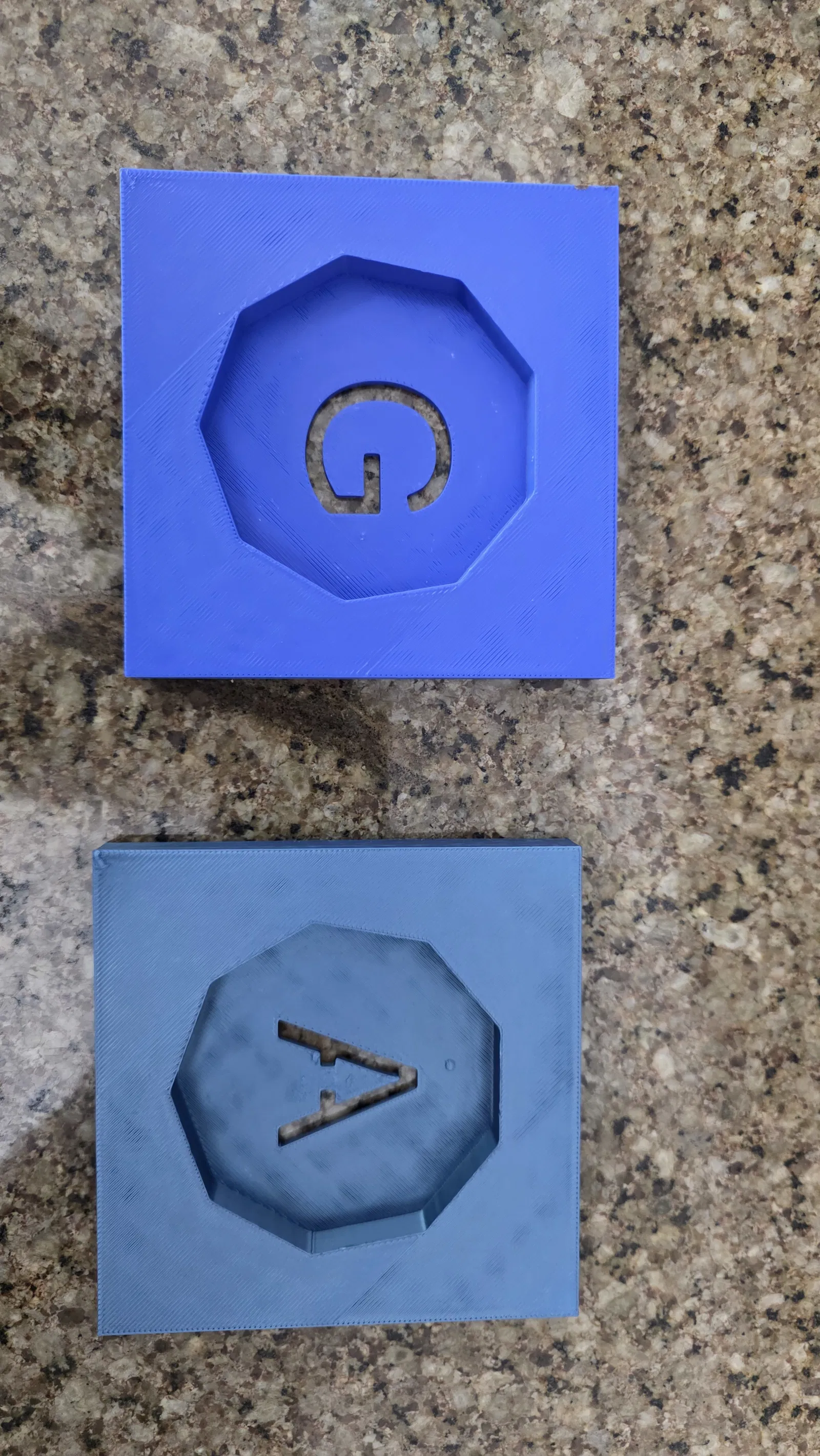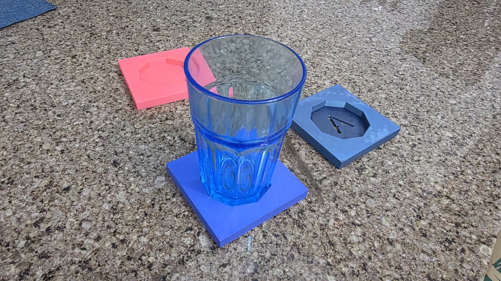 Ai rồi cũng có lúc quên mất ly nước của mình để đâu sau khi xài xong. Tui có làm mấy cái đế lót ly, con nít thích lắm. Có 3 loại: Chữ A, chữ G và loại không có chữ ở dưới. Tui để phần cổ nó dài ra. Bạn có thể cắt nó trong slicer. Tui in với tổng chiều cao là 9mm.