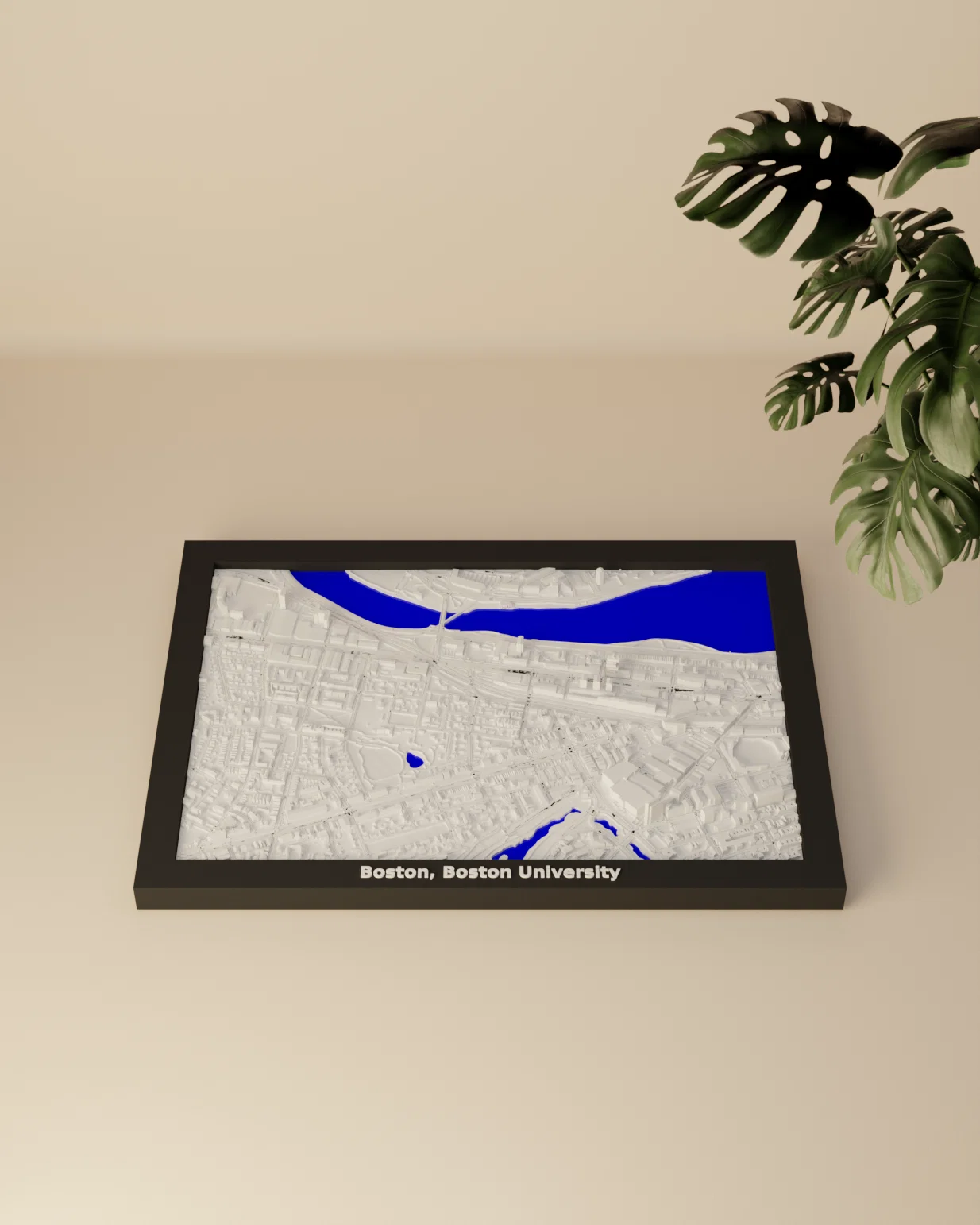 Thưởng ngoạn cảnh quan Boston, Đại học Boston với mô hình địa hình thu nhỏ 3D này! Kích thước 170.5 mm x 119.5 mm, tái hiện chân thực địa hình từ dữ liệu địa lý. Lý tưởng làm quà tặng, trang trí hoặc cho mục đích giáo dục.