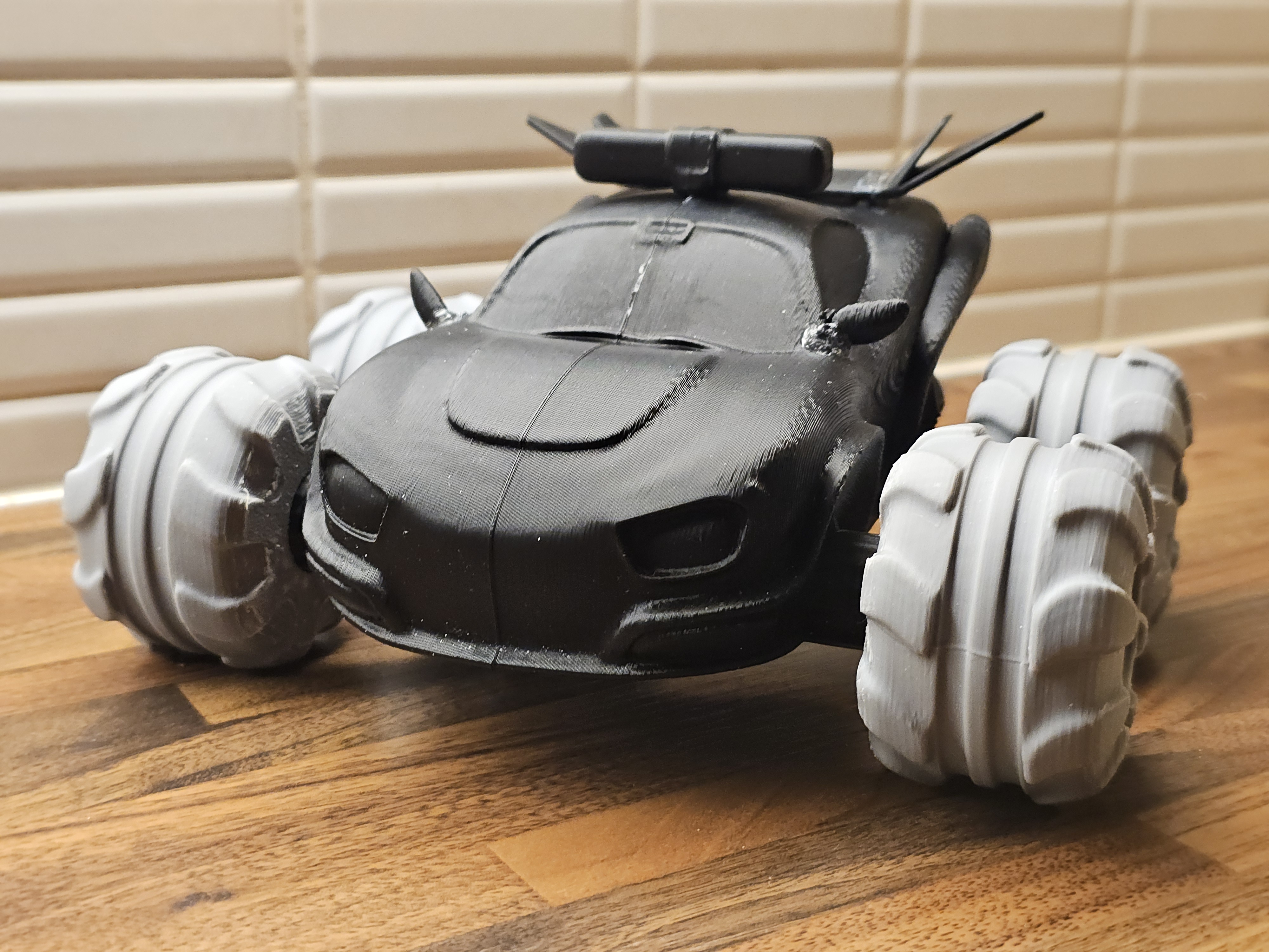 Tui làm mô hình xe cảnh sát quái vật Babybus cho con trai vì không tìm được đồ chơi sẵn. Mô hình đã được chỉnh sửa nhiều để in 3D, có thêm bánh xe và cánh gió. Cần hỗ trợ in và dán keo. Dùng PLA, độ cao lớp 0.2mm. Mô hình không hoàn hảo nhưng đủ làm bé vui.