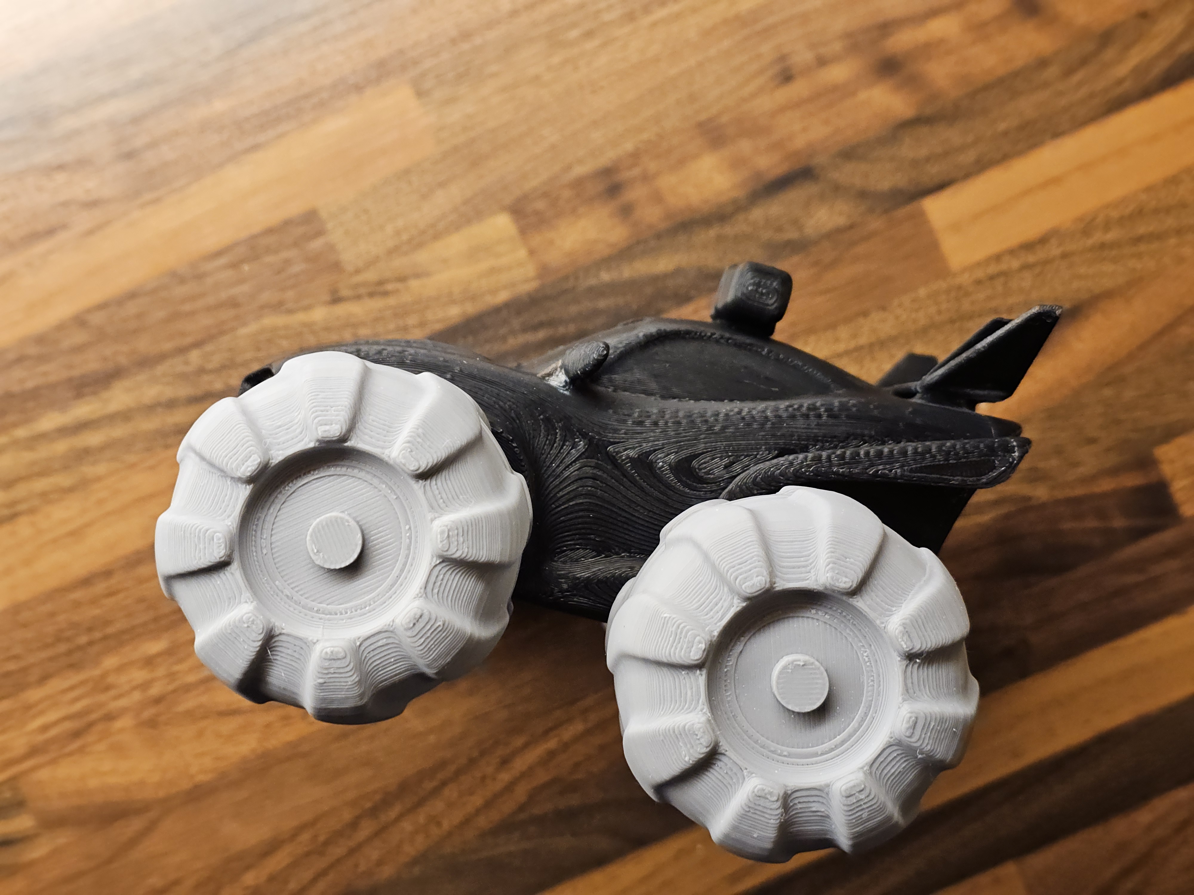 Bánh xe cần chà nhám một chút nhưng sau đó thì gắn vừa khít. Có lẽ dùng TPU cho bánh xe sẽ tốt hơn.
