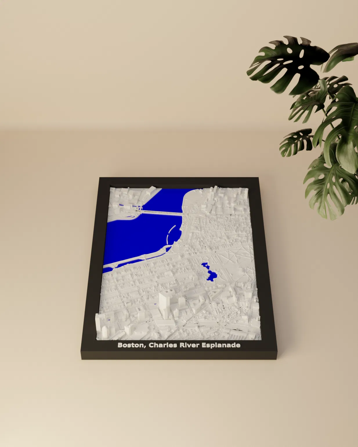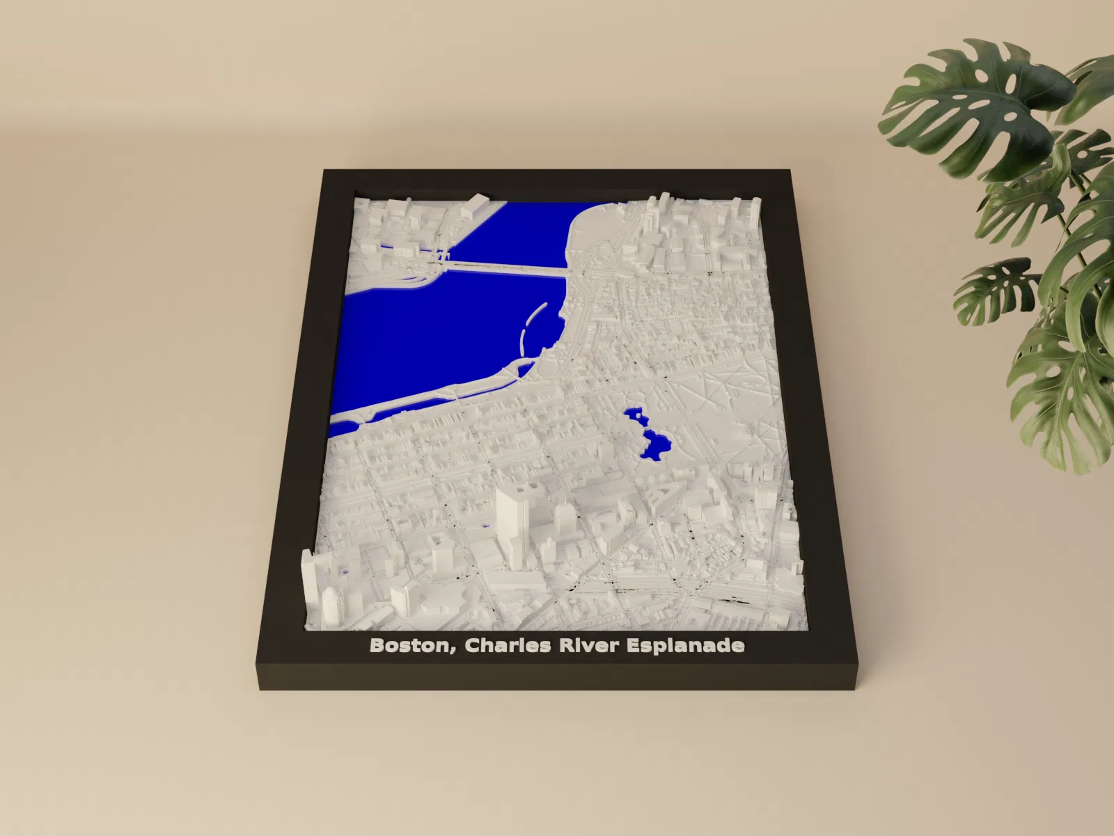 Lưu lại vẻ đẹp cảnh quan thành phố Boston, Charles River Esplanade với mô hình địa hình thu nhỏ này! Mô hình 3D này đại diện cho khu vực địa lý xung quanh tọa độ địa lý 42.356, -71.074 (LatLng).