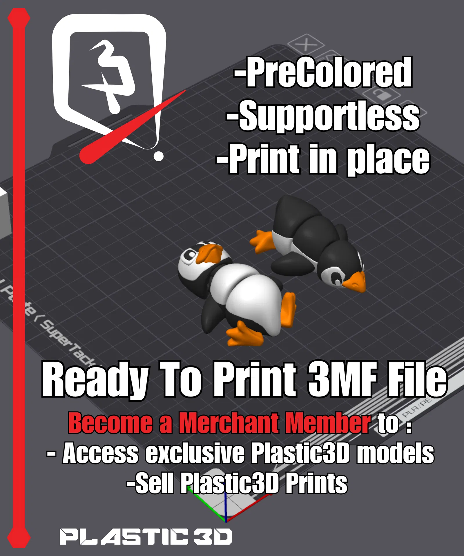 Triết lý Thiết kế Cốt lõi của Chúng tôi: Mọi mô hình đều ra đời từ niềm tin rằng in 3D nên là một trải nghiệm tức thì, đáng tin cậy. Đó là lý do tại sao tất cả các thiết kế của Plastic3D đều có cơ chế không cần hỗ trợ, in trực tiếp, được cung cấp dưới dạng tệp 3MF được tô màu sẵn để có kết quả tức thì, rực rỡ và trải qua quá trình thử nghiệm nghiêm ngặt. Chúng tôi xử lý sự phức tạp để bạn có thể tập trung hoàn toàn vào sản xuất và lợi nhuận, đảm bảo tỷ lệ thành công cao và chất lượng tuyệt đẹp ngay từ khay in.