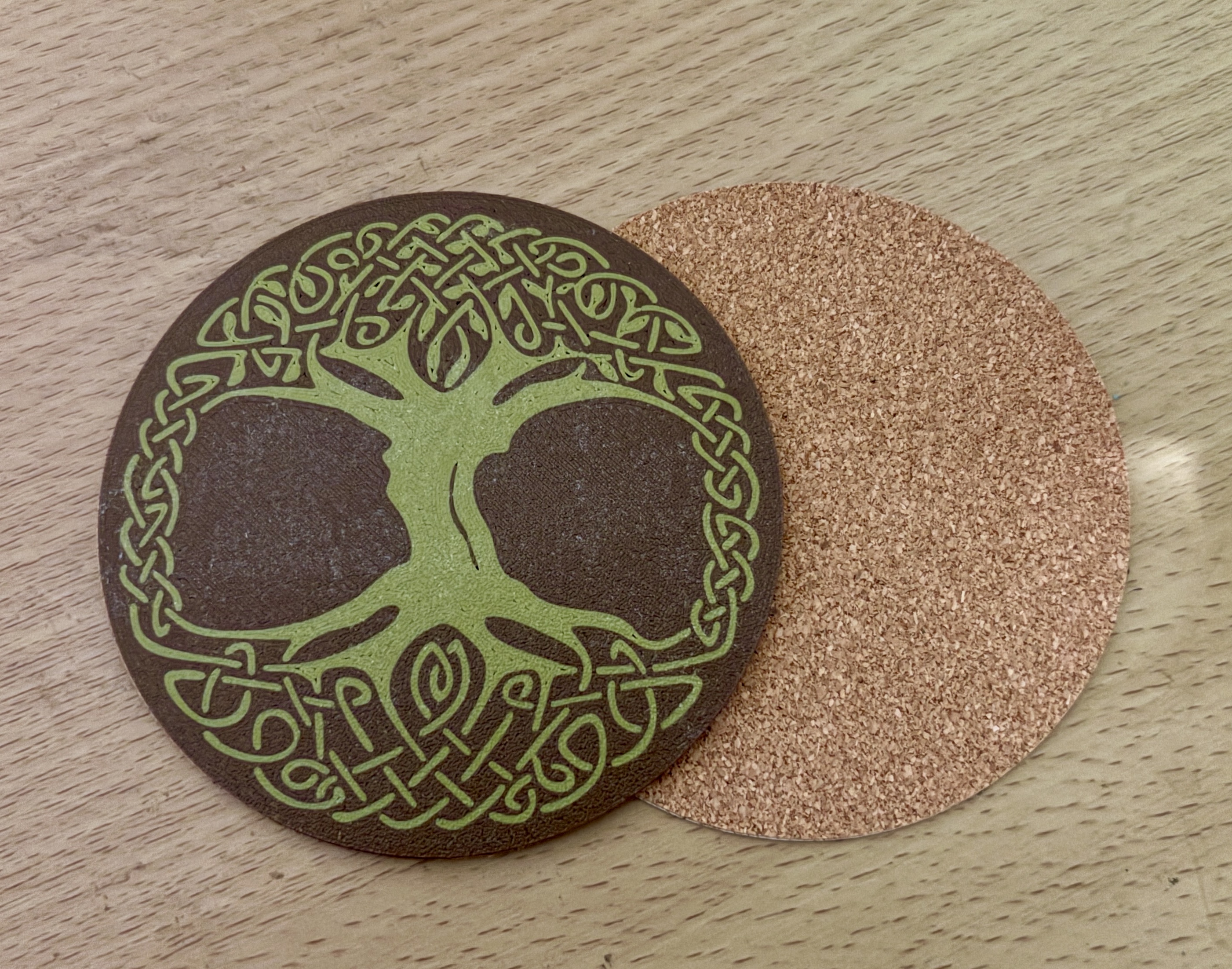 Đế lót ly Cây Sự Sống Celtic Ireland độc đáo. In úp xuống với bề mặt nhám, nên dùng PETG thay vì PLA để tránh cong vênh. Kích thước 95mm, có thể dán thêm đế nút bần chống trượt.