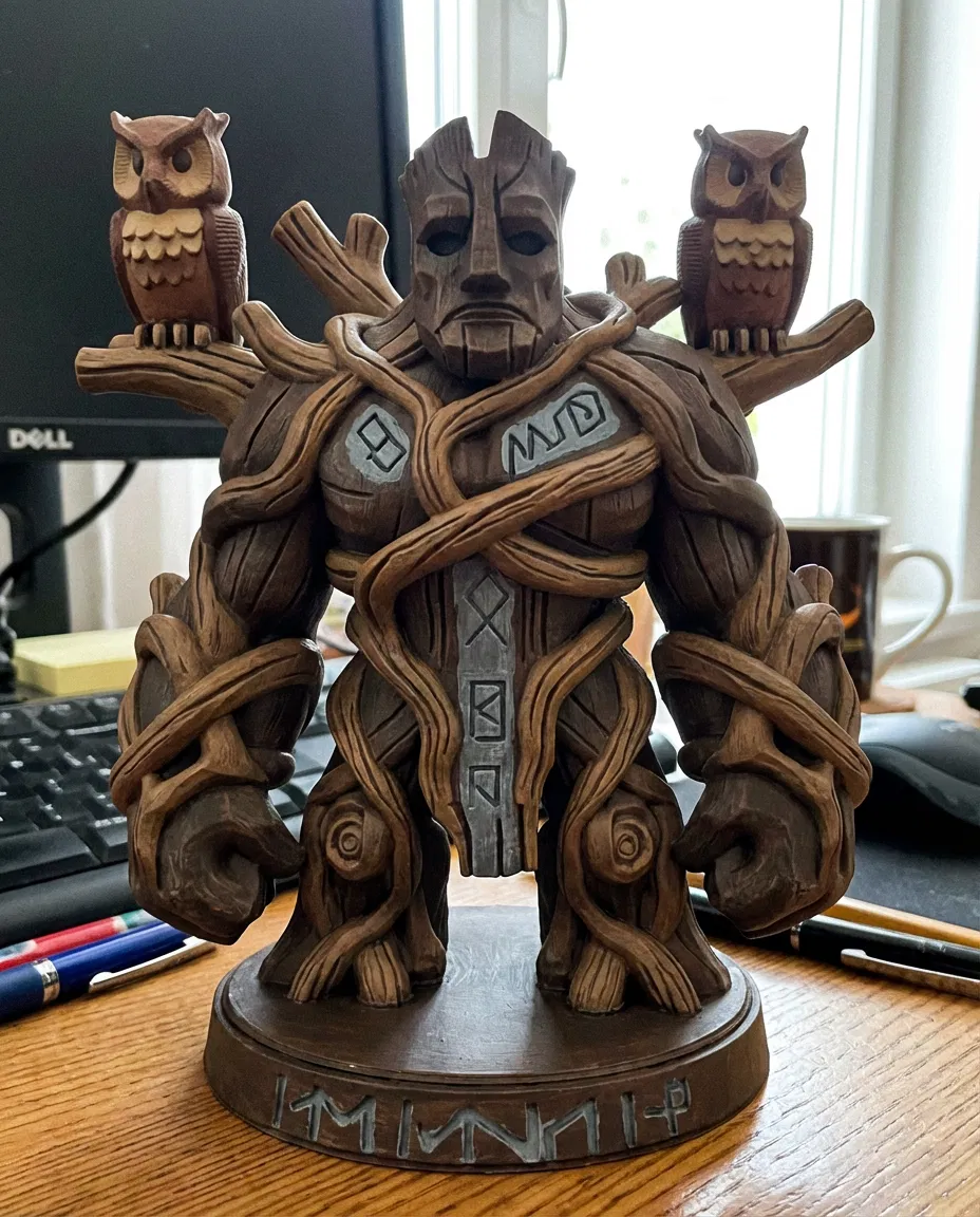 Kẻ bảo vệ cổ thụ của khu rừng. Mô hình Treant chi tiết với vân gỗ, rune và cú canh gác. Tuyệt tác cho fan fantasy, thần thoại, D&D. Thích hợp in 3D với cài đặt FDM.