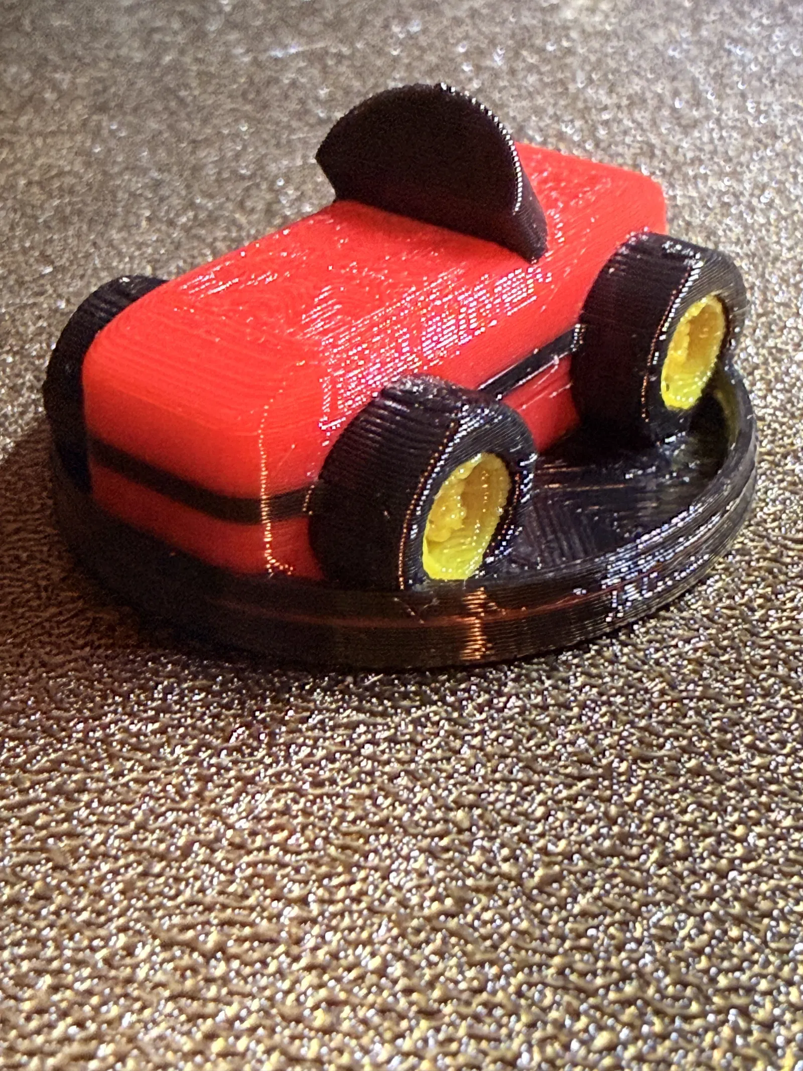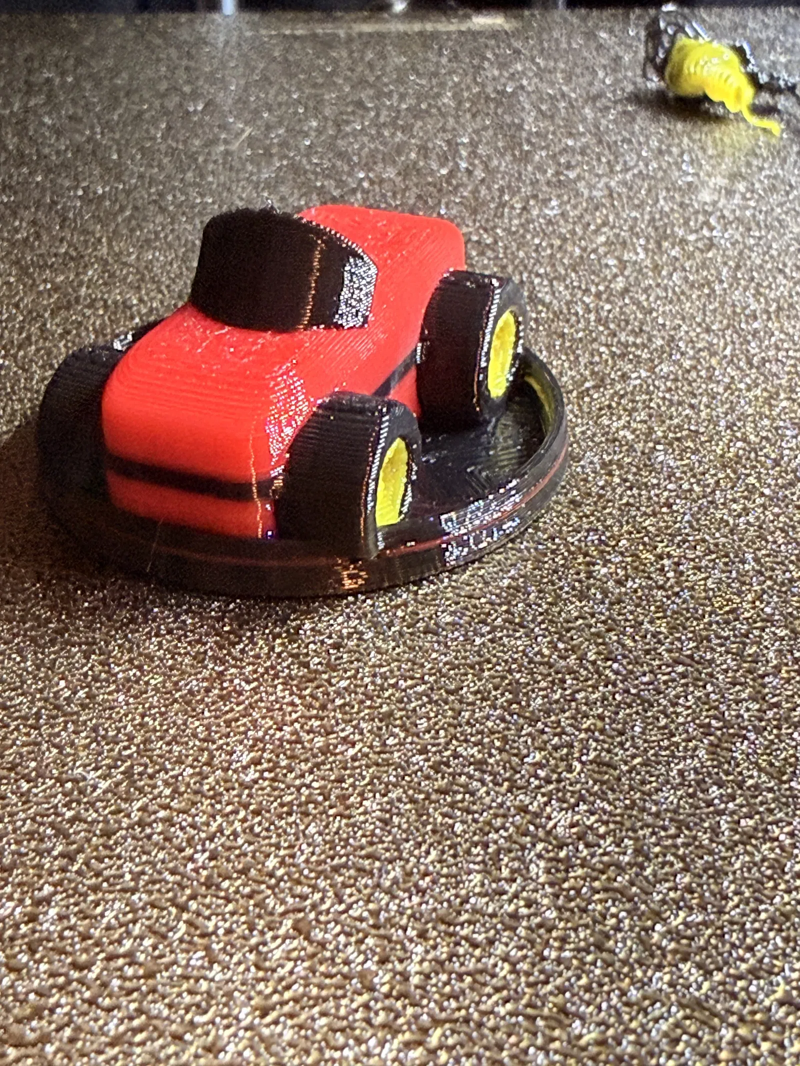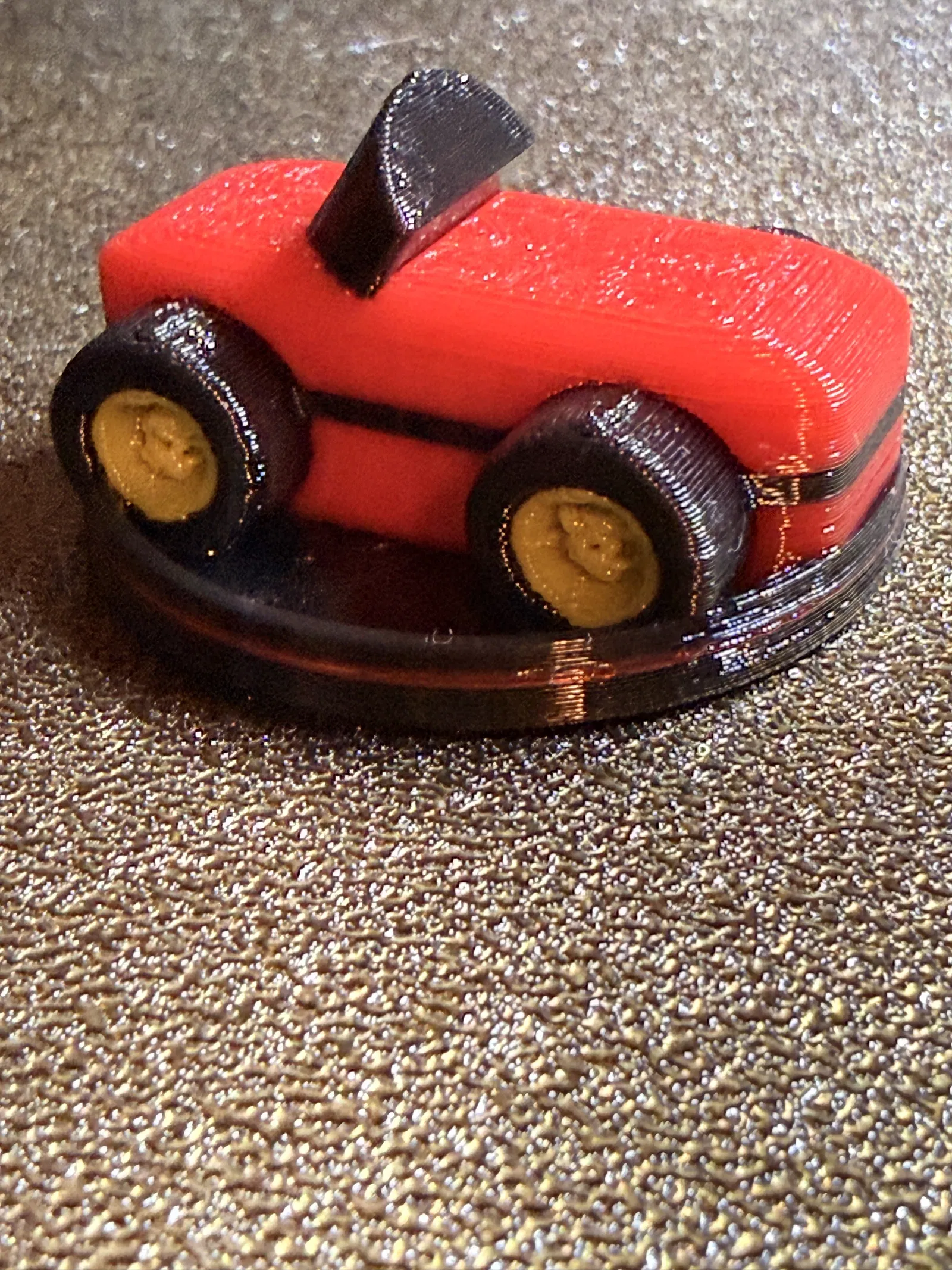 Mẫu xe Crash Derby Ah-Ha Racer, một phiên bản chỉnh sửa từ thiết kế 3D đầu tiên của tác giả dành cho game Crash Derby. Tác giả chia sẻ kinh nghiệm in ấn và gợi ý cải thiện chi tiết lốp xe.