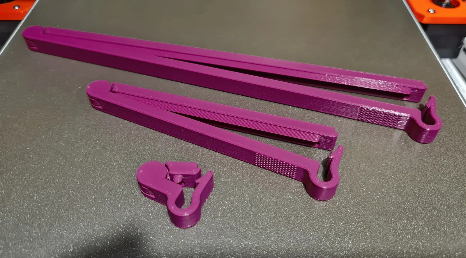- Tui có test thử tính năng mới "extra perimeters on overhangs" của Prusa Slicer 2.6.0-alpha2. Nói chung là xài được, nhưng mà tui không khuyến khích xài cho cái kẹp này đâu. Sau khi bẻ tới bẻ lui cái bản lề nhiều lần, nó không được mượt mà như bình thường.