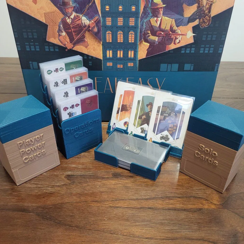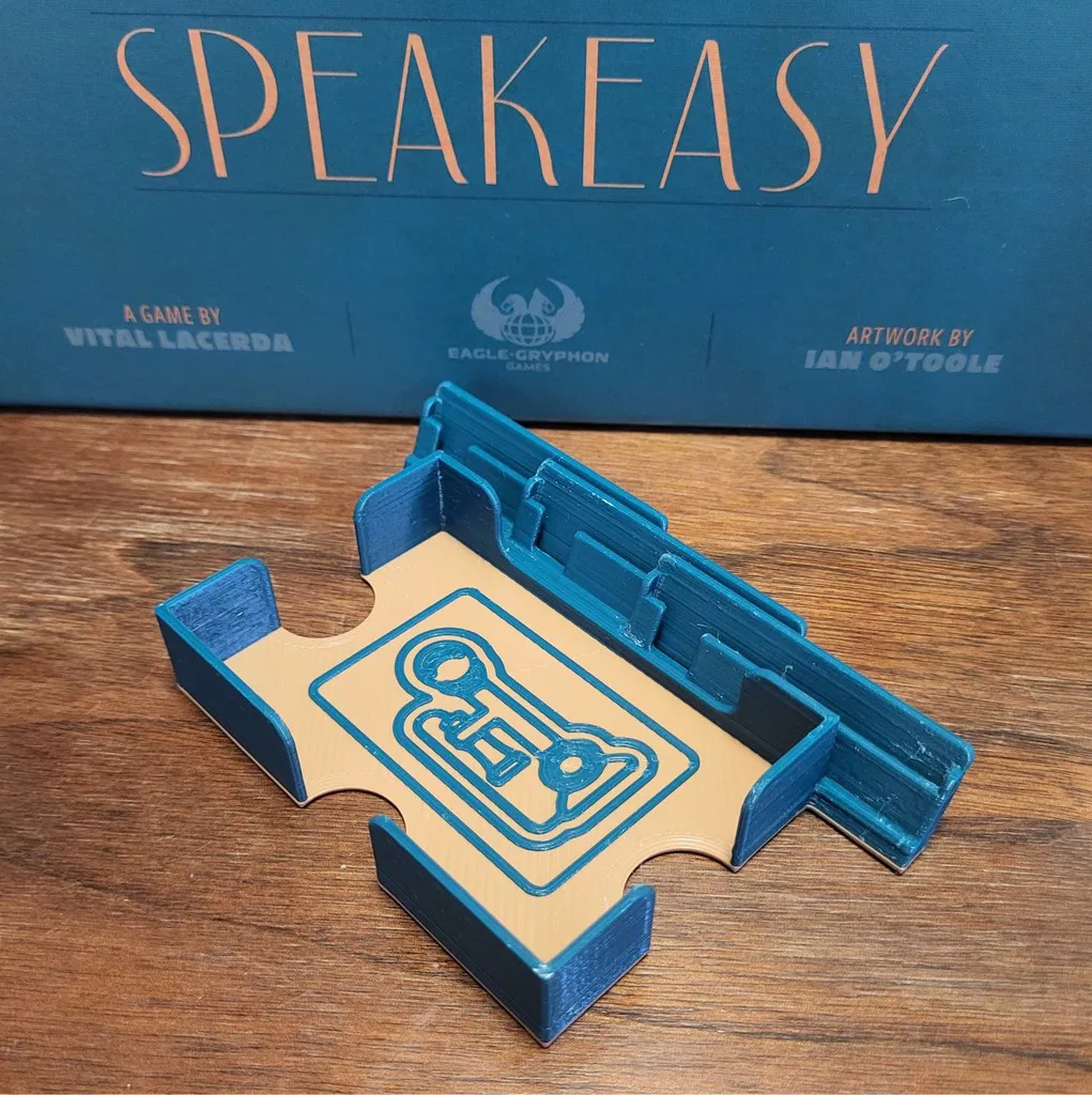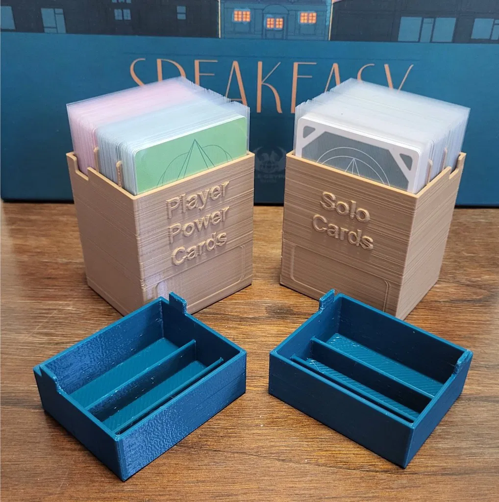 Đây là những khay đựng và hộp đựng bài dành cho các bộ bài trong board game Speakeasy. Chúng được thiết kế để tăng tốc quá trình chuẩn bị ván chơi và giảm không gian bàn cần thiết. Tất cả các khay đều được thiết kế cho bài có bao bọc.