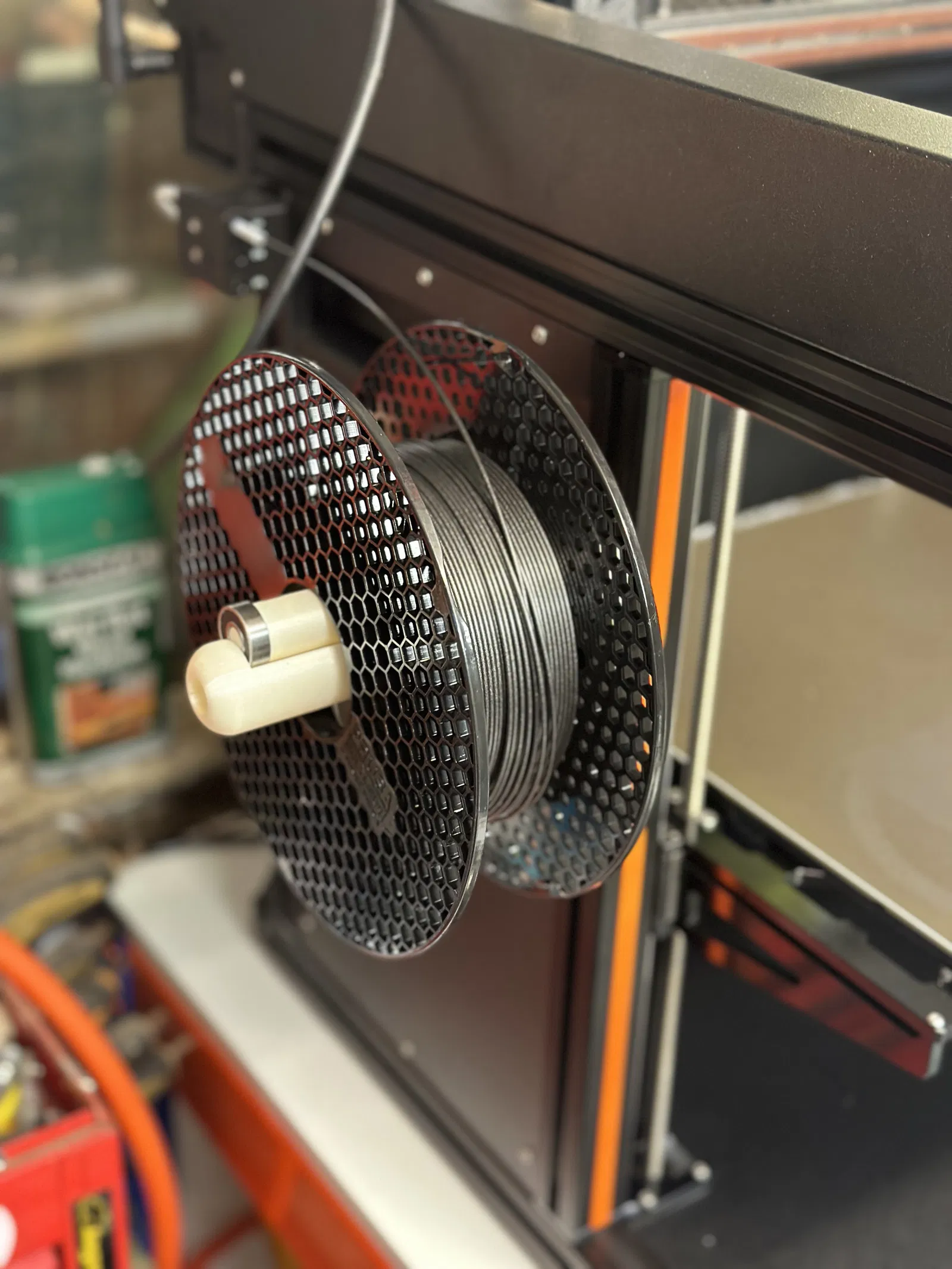 Tui luôn thích mấy cái giá đỡ cuộn dây tóc nào có bạc đạn để giảm tải cho động cơ extruder. Cái này thấy càng cần thiết hơn với đường dây tóc dài của Prusa XL.