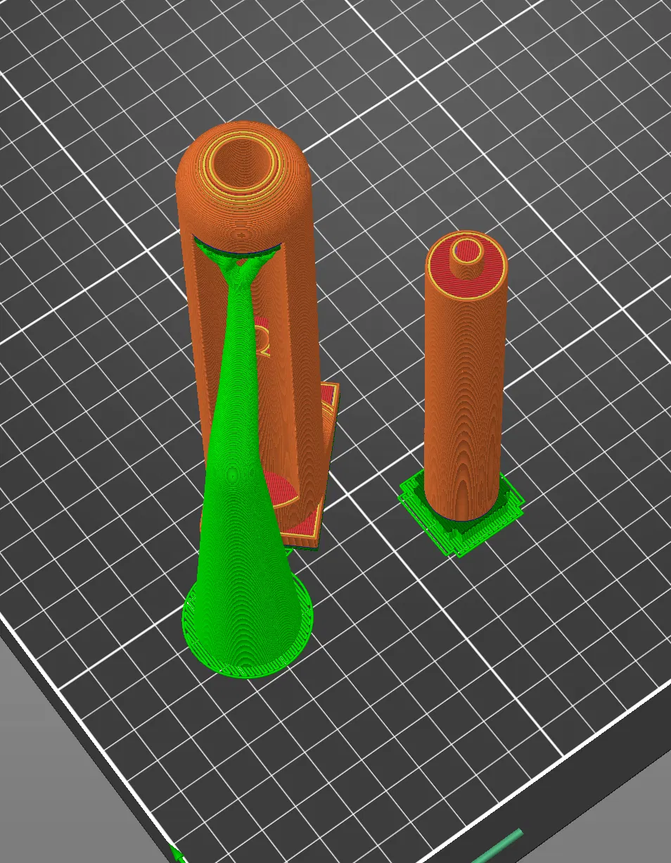 Khuyến khích in phần thân chính với hỗ trợ hữu cơ (organic supports) và phần trục quay với hỗ trợ thông thường, theo hướng in như trong ảnh.