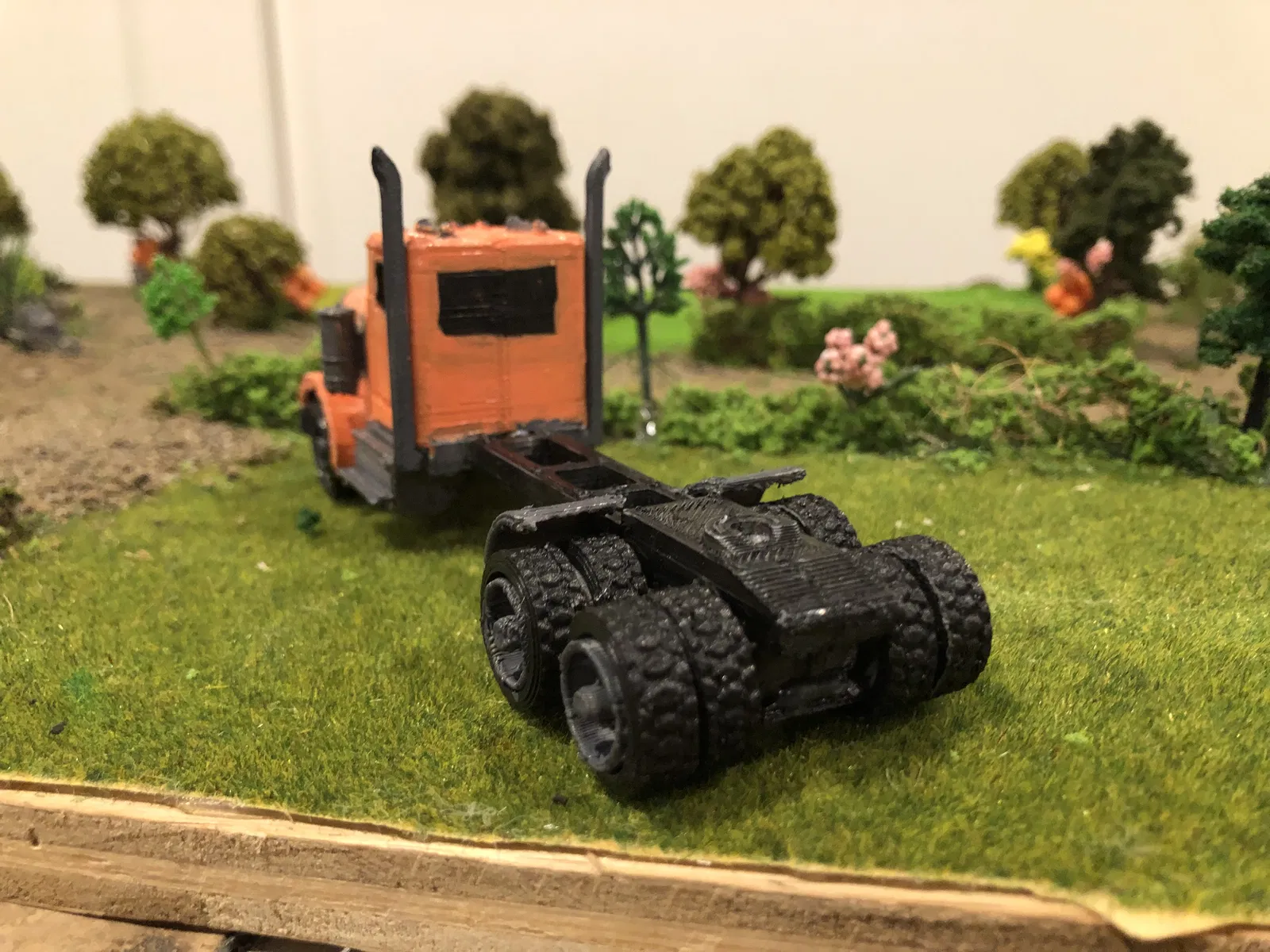 Chiếc xe tải Kenworth W900A tỉ lệ 1/64 này được tạo ra bằng Tinkercad. Hướng dẫn in ấn: in theo màu dán nhãn, dùng màu trắng hoặc đen tùy thuộc vào bút sơn bạn có. Keo là bắt buộc để lắp ráp. Dùng tree supports chạm vào build plate.