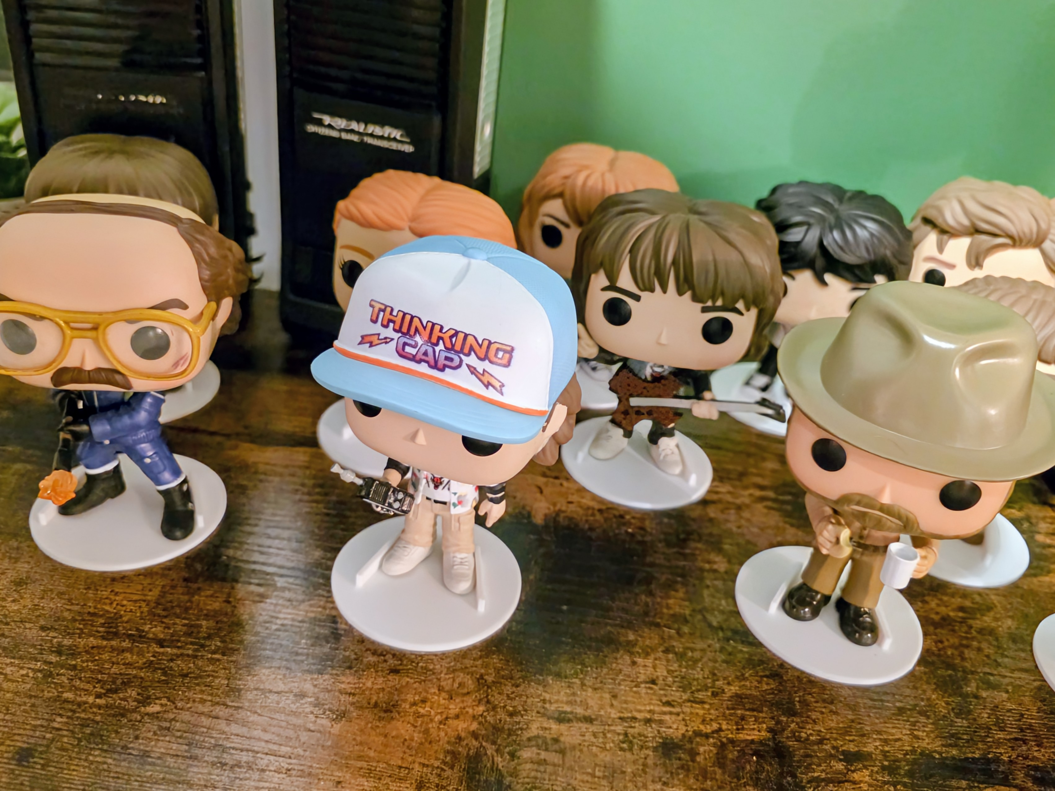 Hầu hết các đế Funko thông thường đều dùng chốt cắm, mà cái chốt này hay bị lỏng hoặc không vừa, hoặc là kiểu "chân đế" không tính tới mấy tư thế đứng dang rộng. Bộ đế này có hệ thống "Hybrid Grip" tùy chỉnh, thiết kế riêng cho các tư thế đứng khác nhau của dòng phim Stranger Things.