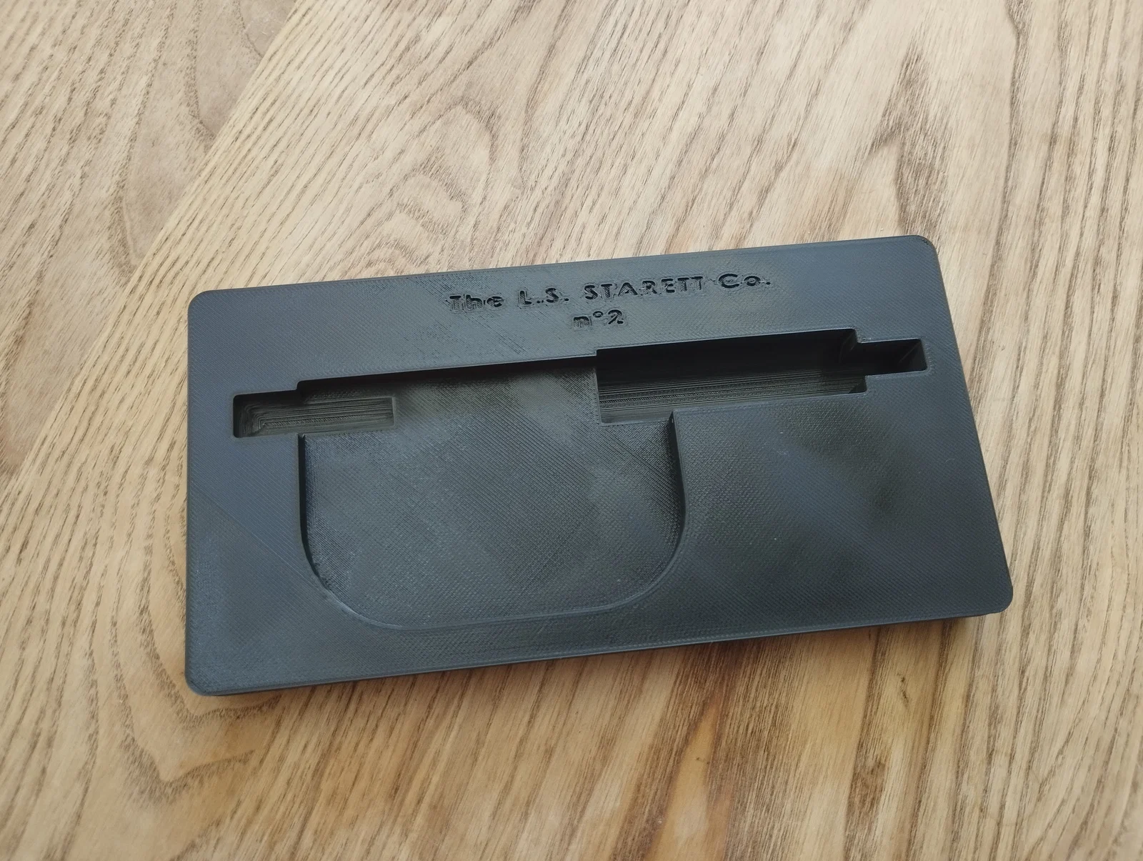 Hộp đựng được in 3D tùy chỉnh cho thước đo Micrometer L. S. Starett cũ, mẫu số 2. In bằng PLA+ màu đen với 5% độ đặc, độ dày lớp 0.15mm và không cần support. Lý tưởng để bảo vệ dụng cụ đo lường của bạn.