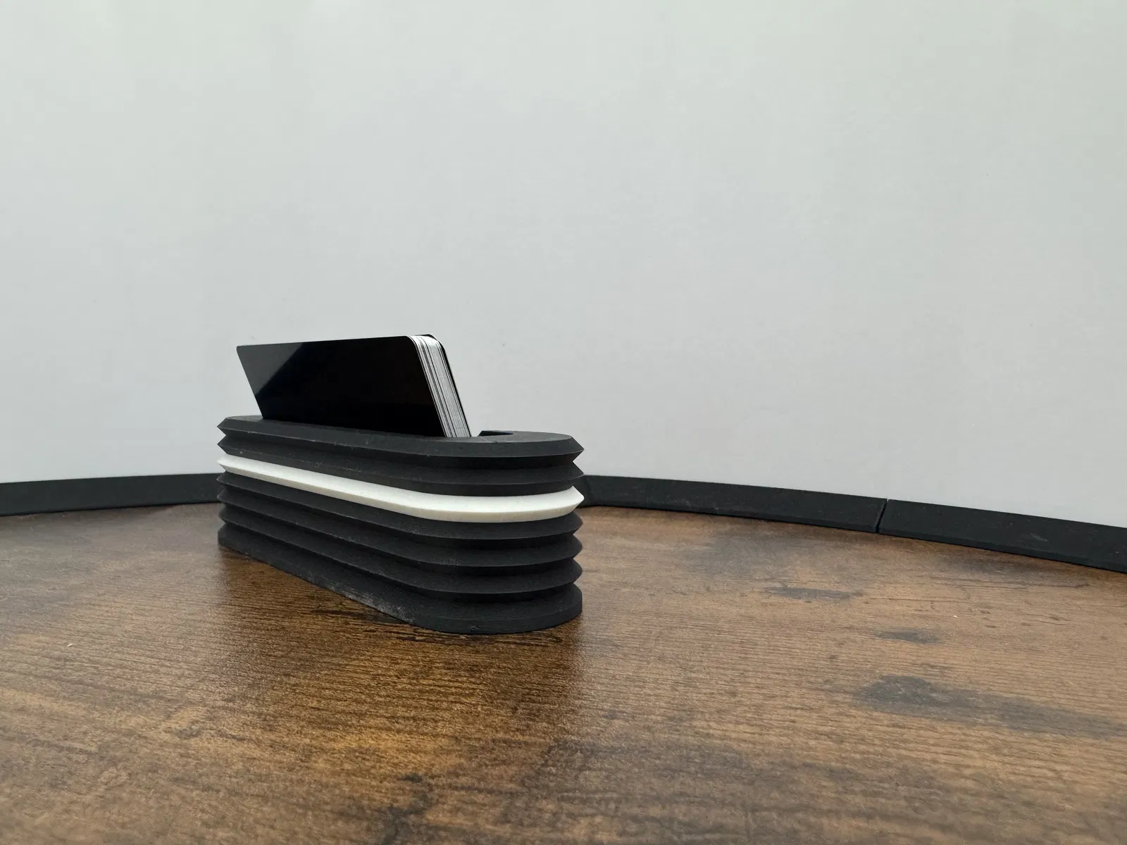 Kệ Đựng Danh Thiếp V-Card với thiết kế chân đôi gân độc đáo, mang lại vẻ ngoài tối giản, hiện đại. Giữ danh thiếp chắc chắn, tạo hiệu ứng lơ lửng sang trọng, hoàn hảo cho mọi không gian làm việc chuyên nghiệp. Dễ in, không cần support, lý tưởng cho PLA, PETG, ABS.