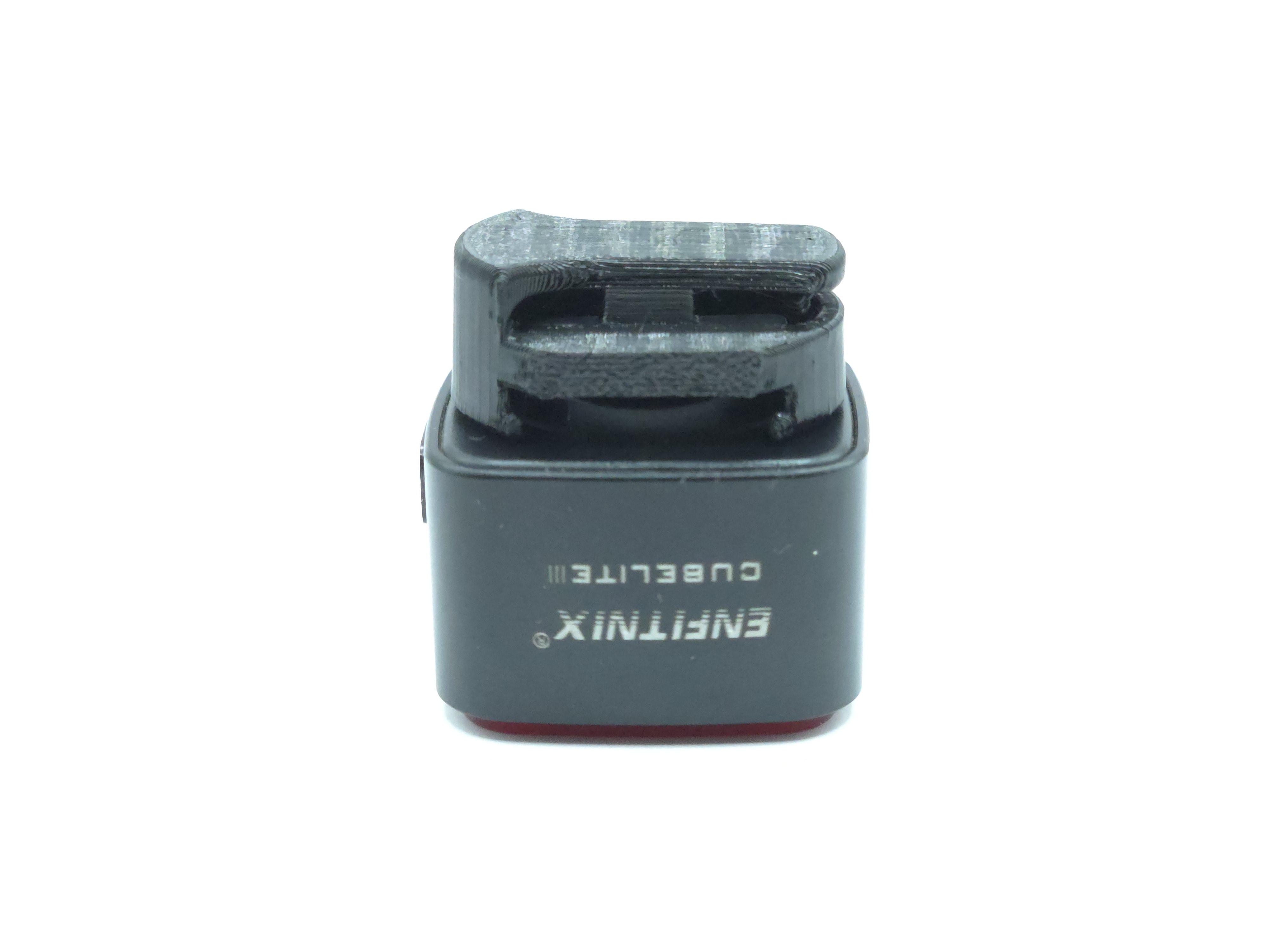 Cái pat gắn để gắn đèn hậu màu đỏ Cubelite III của Enfitnix lên xe đạp. Em đang dùng cái pat gắn này để gắn đèn vô chỗ gắn pat có sẵn trên cái balo Osprey Radial của em nè.