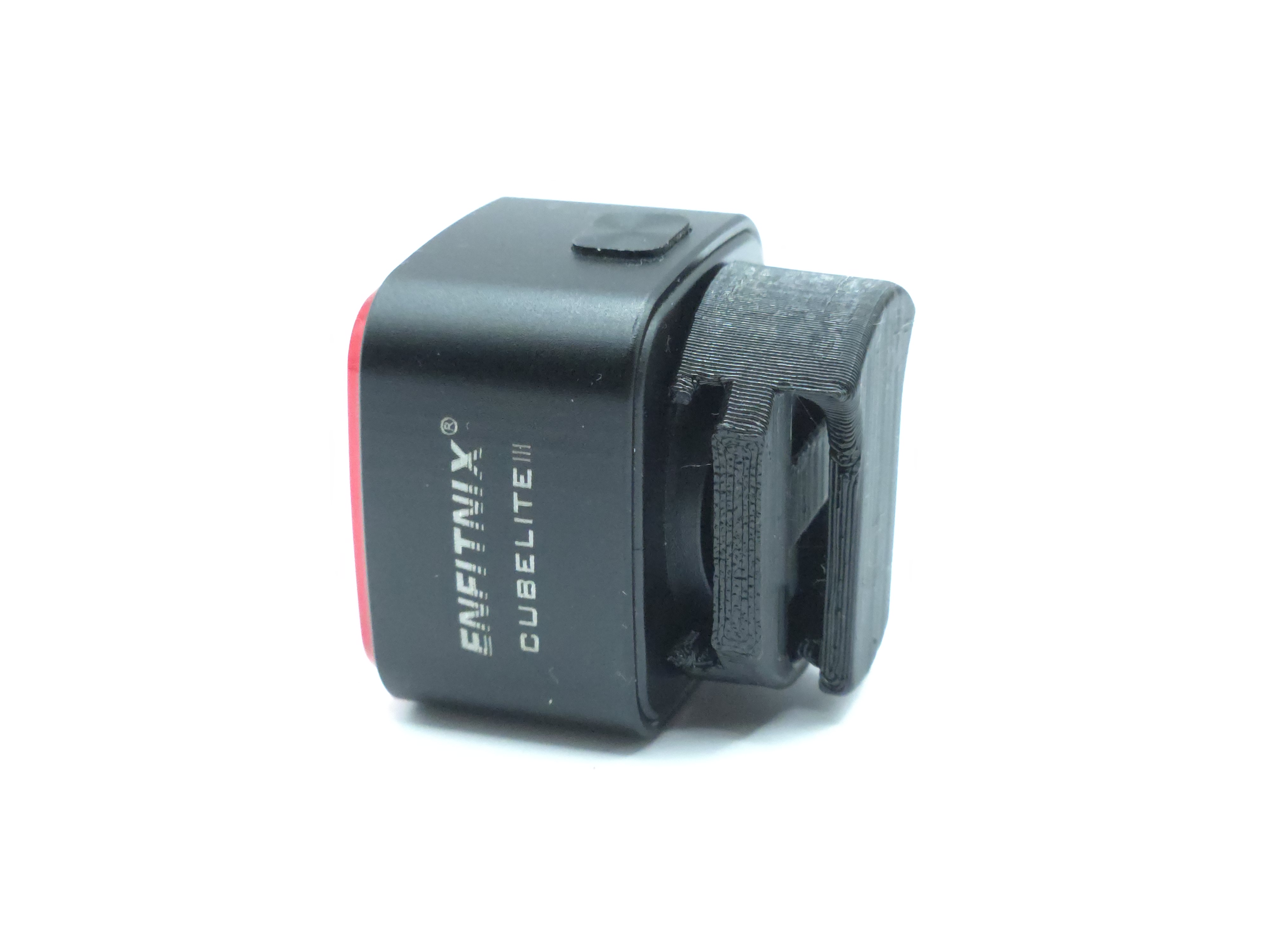 Cái pat gắn đèn hậu Cubelite III của Enfitnix này để anh em gắn lên xe đạp. Em đang gắn lên balo Osprey Radial, chỗ có pat sẵn luôn đó. Anh em nên xài filament dẻo như PETG hay PCTG nha.
