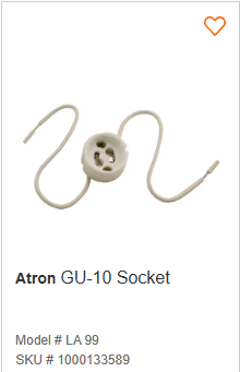 Đui đèn GU10: Atron LA 99 (Có thể mua tại Home Depot https://www.homedepot.ca/product/atron-gu-10-socket/1000133589 )
