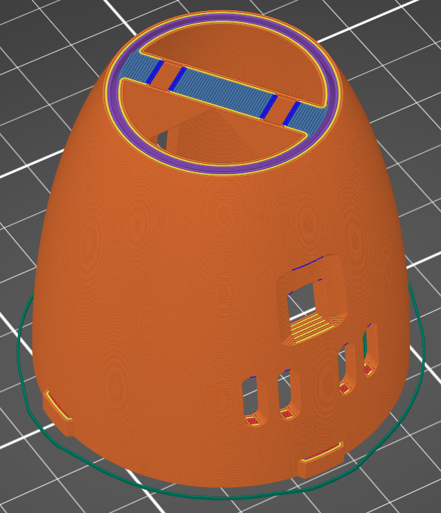 - Các đế chống nằm ở bên trong cấu trúc. Chúng có thể được gỡ ra sau khi in, và ngoại hình không quan trọng vì chúng bị che khuất.