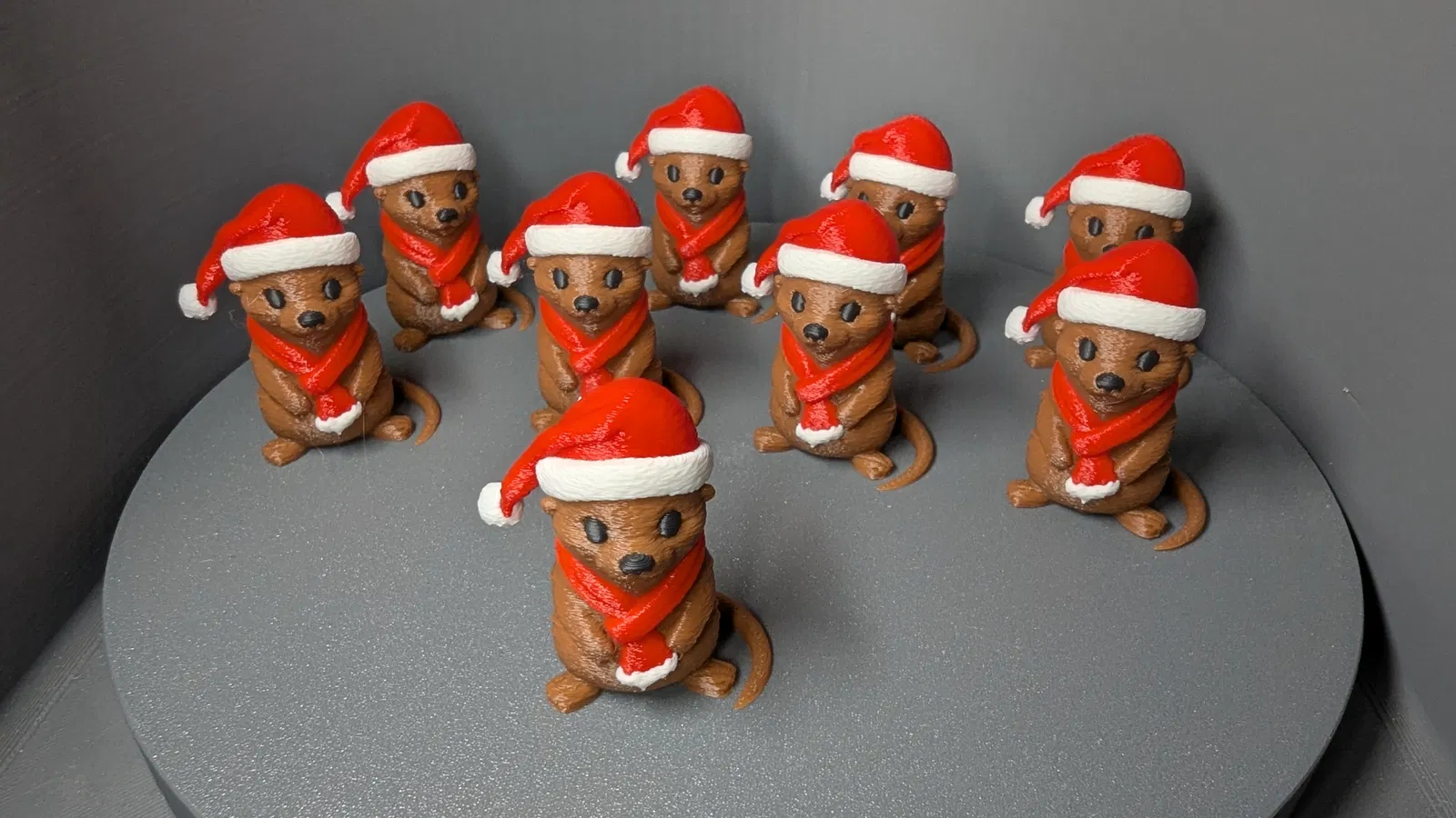 Xin chào các nhà sáng tạo! Tui có một chú rái cá Giáng sinh cao 50mm cực kỳ dễ thương đây nè. Phiên bản nhiều màu sẽ tốn kha khá filament, nên tui đề nghị in vài con cùng lúc để đỡ phí nha. Có thể tham khảo thêm các mẹo in ấn để giảm rác thải hiệu quả hơn.