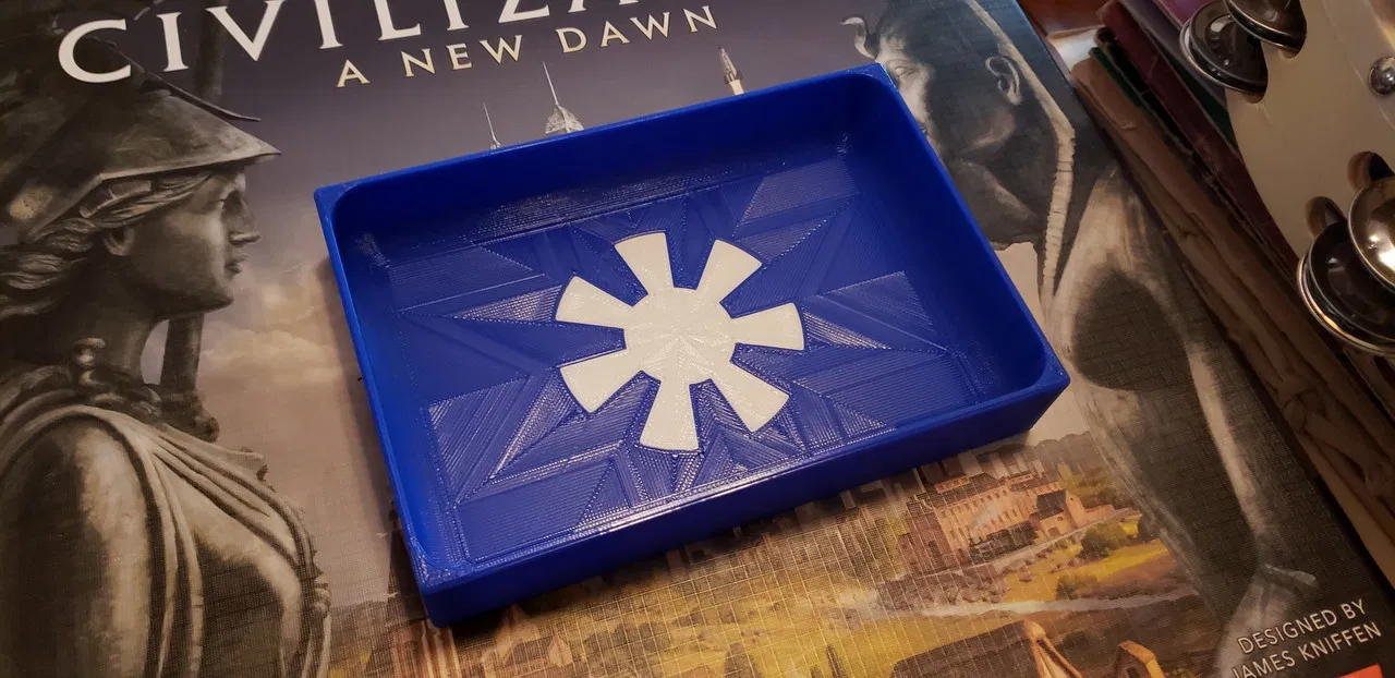 Remix STL khay người chơi Civilization: A New Dawn cho máy in đa vật liệu MMU2S, tích hợp logo trực tiếp, không cần dán. Tương thích Prusa I3 MK3S MMU2S. Xem bản gốc để có các bộ phận khác.