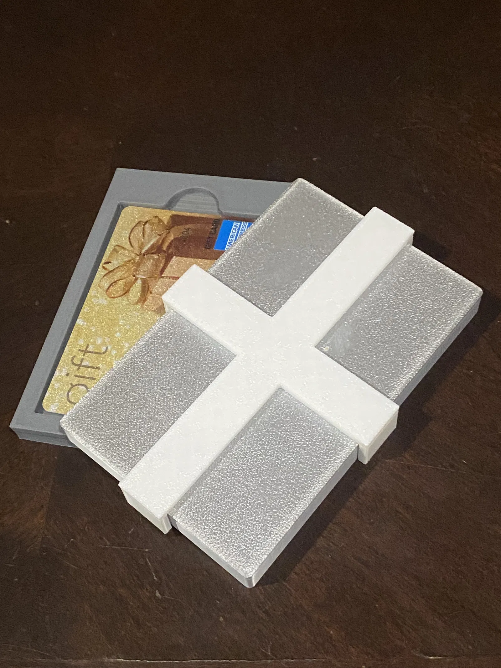 Hộp này vừa với thẻ tiêu chuẩn (54.6mm x 86.5mm) và có các khấc để dễ dàng mở. Tổng cộng, bạn sẽ tốn khoảng ~65 gram sợi nhựa và ~2.5 giờ để hoàn thành.