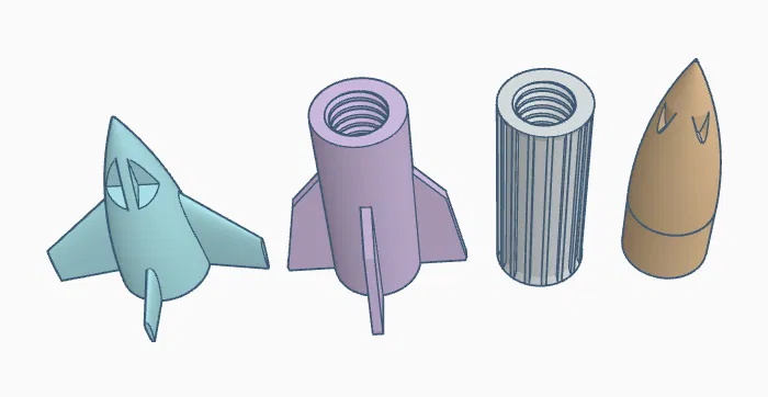 Tên lửa đồ chơi mô-đun phiên bản 2, với nâng cấp chính là khớp nối ren chắc chắn hơn. Bạn có thể tự do kết hợp các bộ phận như động cơ, tầng, module tải trọng, mũi tên lửa và các bộ phận nối dài theo ý thích. Nhiều bộ phận mới sẽ sớm ra mắt!