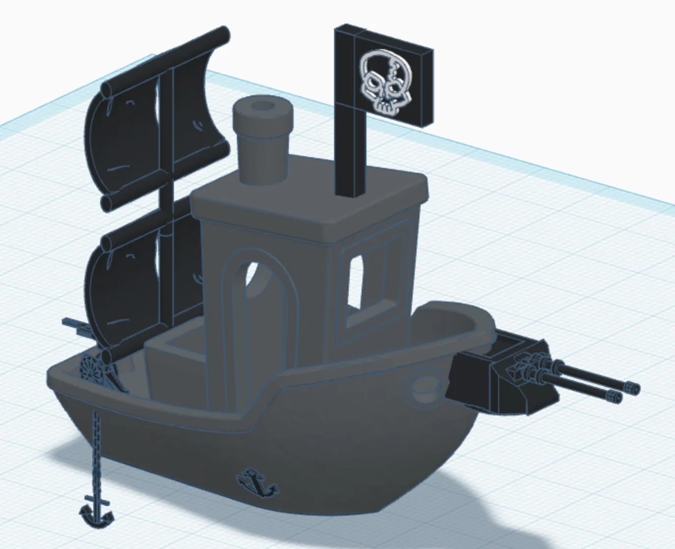 Phiên bản chỉnh sửa của Benchy đơn giản nè bà con! Thêm cánh buồm, cờ cướp biển, 3 khẩu pháo phía sau, 1 khẩu đại bác lớn phía trước, neo tàu và bánh lái! Dùng mẫu này để thử thách giới hạn máy in của bạn nha!