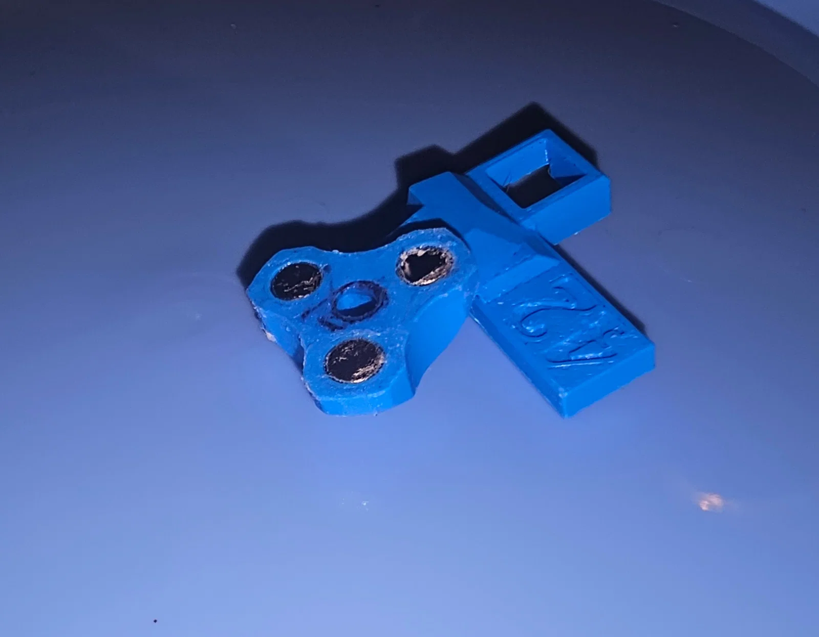 In khung chính và một trong các khớp nối nam châm với giá đỡ. Sau khi in, hãy đảm bảo lỗ xuyên qua khớp nối nam châm có thể tháo rời được thông thoáng và ống PTFE đi qua sạch sẽ (nó nên vừa khít). Cũng đảm bảo bạn loại bỏ mọi dấu vết của giá đỡ khỏi các lỗ nam châm vì chúng được định cỡ để nam châm gần như bằng phẳng với bề mặt in (độ sâu lỗ là 2.2mm cho nam châm đơn và 4.2 cho chồng kép). Bất kỳ giá đỡ còn sót lại trong lỗ nào cũng sẽ khiến nam châm nhô ra. Hãy cẩn thận làm sạch các lỗ nam châm vì đáy lỗ rất gần với bề mặt ngoài và trong trường hợp của ECAS04, các lỗ nam châm có dung sai cực kỳ khít với lỗ trung tâm mà khớp nối lắp vào. Tôi cần bộ phận này càng mỏng càng tốt nhưng vẫn có lực từ tốt và điều đó đòi hỏi dung sai phải được giữ chặt. Tất cả các nam châm đã được dán vào vị trí sau khi thử nghiệm lắp đặt xác nhận chúng vừa vặn.