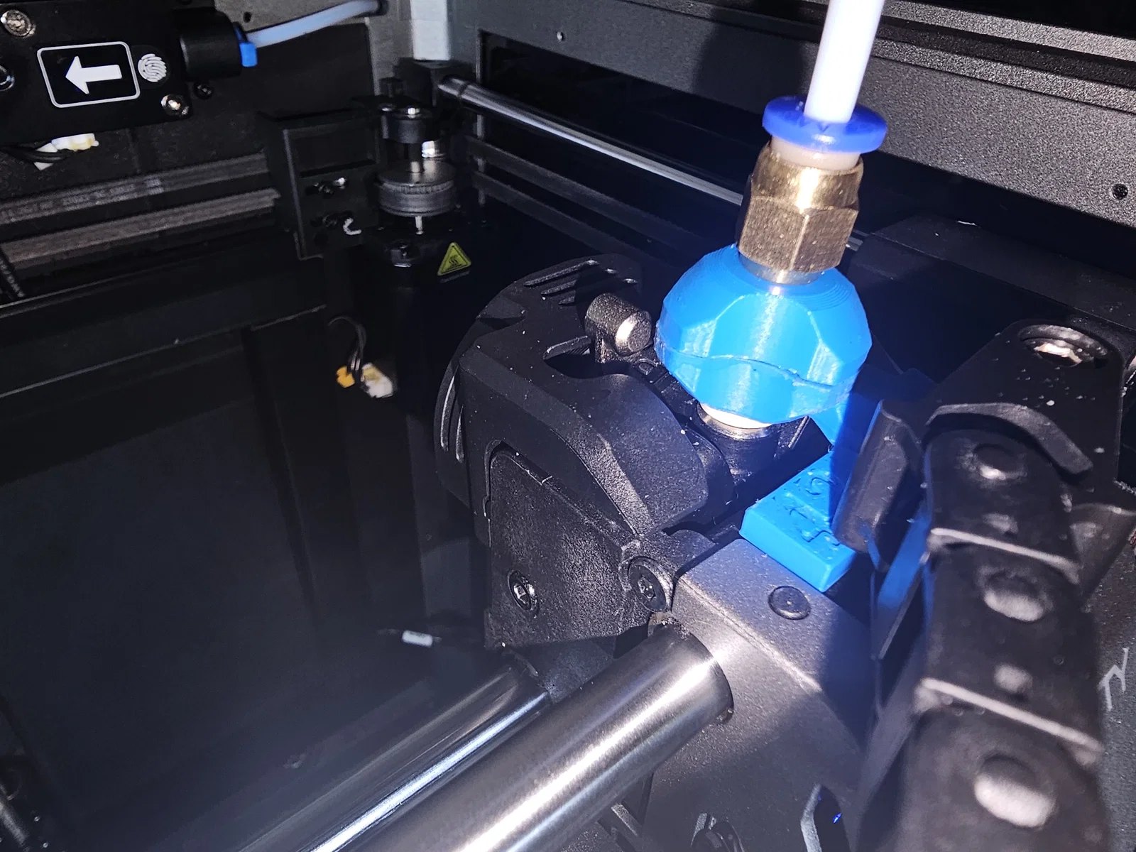 Bản thân thiết kế cần một đoạn ống PTFE dài 22mm (bạn có thể cắt ra từ đầu ống hiện có vì creality làm cho ống đó quá dài nên không cần mua thêm, nhưng đừng dùng kéo hoặc bất cứ thứ gì làm biến dạng ống). Đoạn ống nhỏ này được luồn qua bản in khung chính và trực tiếp vào khớp nối khí nén của bộ đùn để cố định nó. Sau khi lắp đặt, phần trên của đoạn ống nhỏ đó cần nằm phẳng với bề mặt ghép nối nam châm của khớp nối dưới Moonbase.