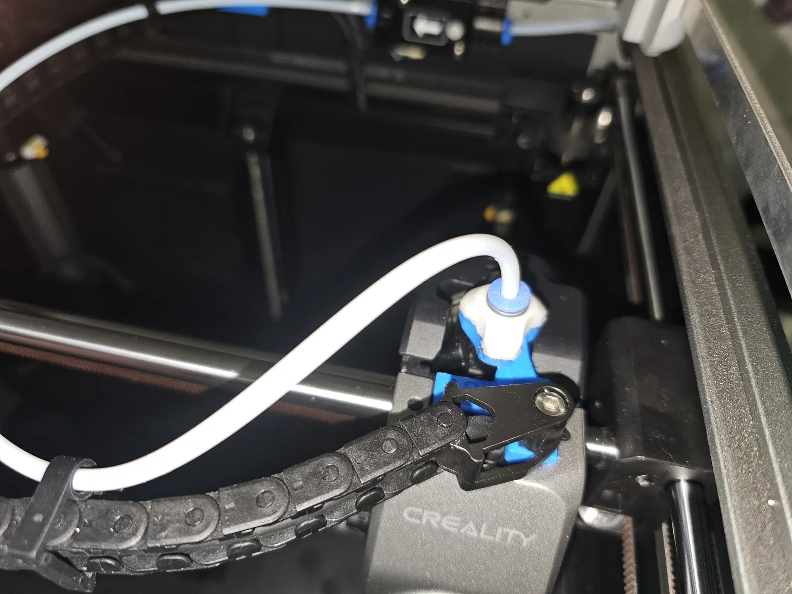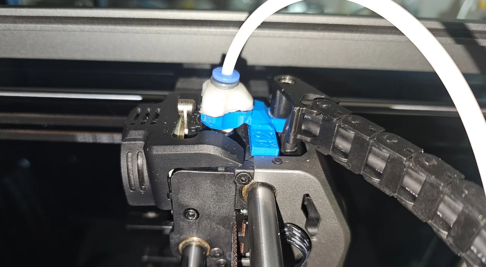 Với kết nối PTFE được gắn bằng nam châm tại bộ đùn, bản in này cho phép bạn chỉ cần rút đầu nối PTFE ra khỏi bộ đùn khi cần mà không gây hao mòn cho ống hoặc khớp nối. Hình dạng bản in tại 2 điểm kết nối nam châm giúp đường dẫn vào bộ đùn có hướng thẳng đứng hơn, đồng thời loại bỏ chỗ gấp khúc chặt mà bạn thường thấy trên dòng K1 ở điểm ống PTFE thường đi vào bộ đùn.