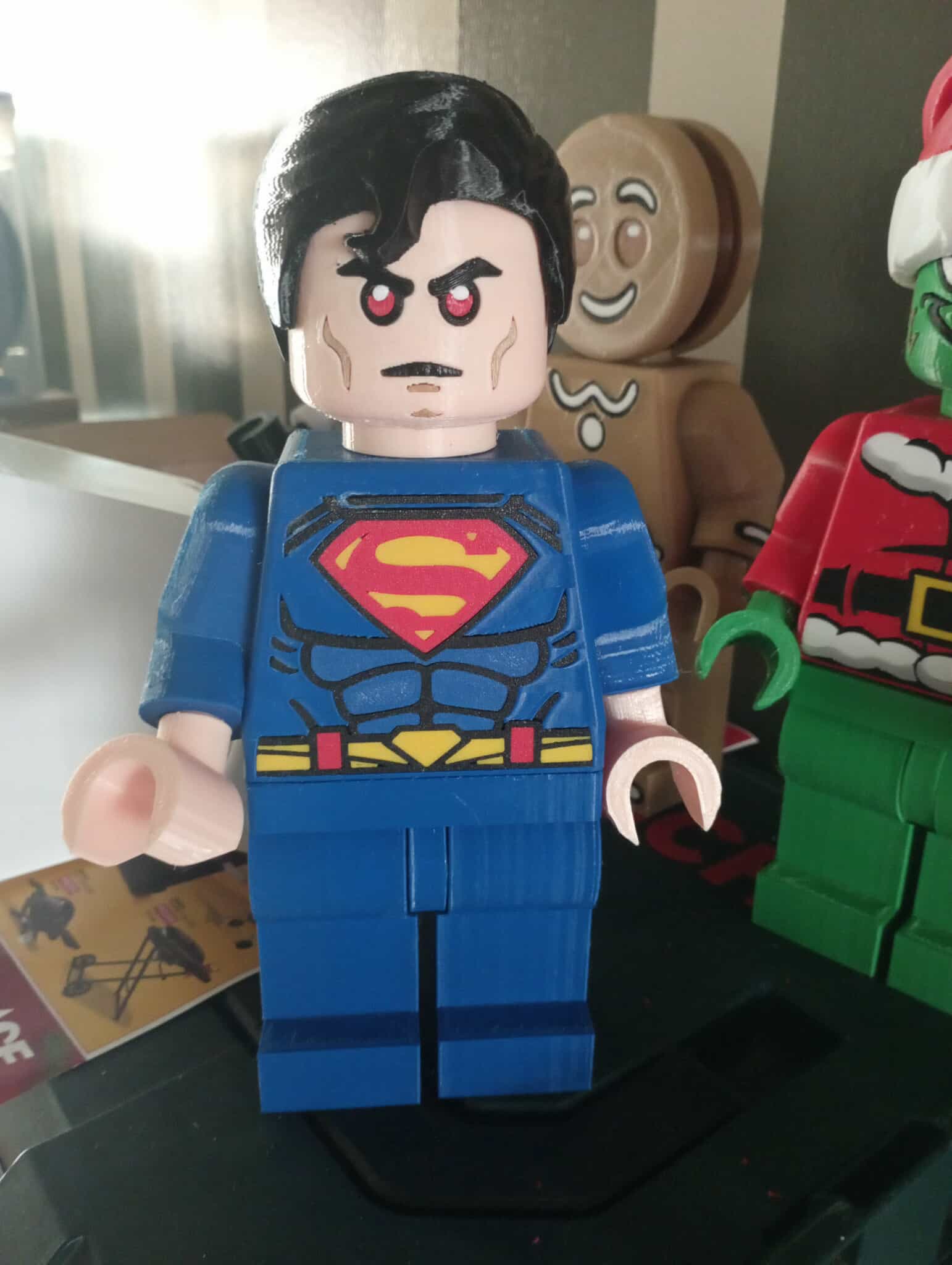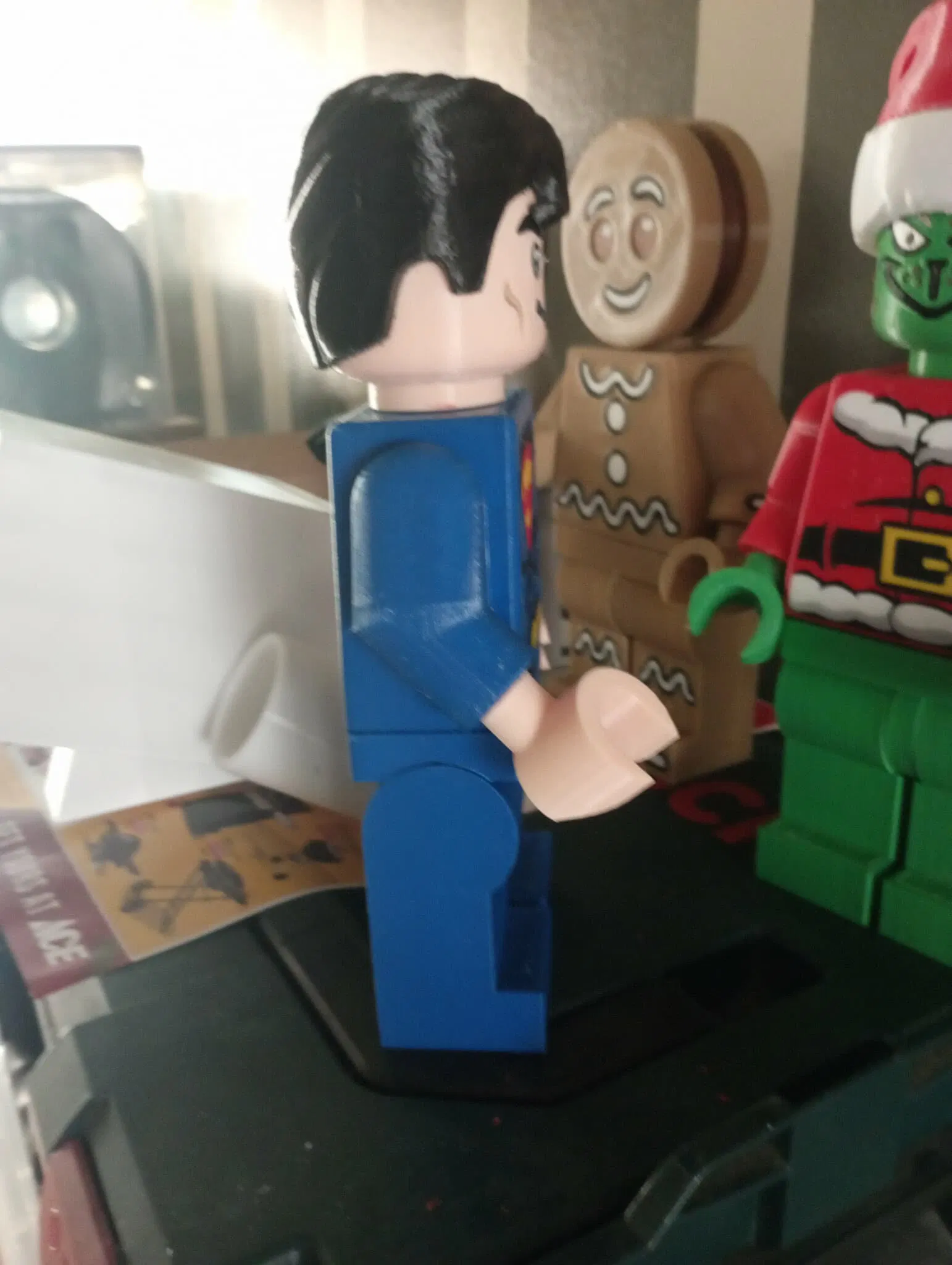 In 150% scale. The hair is a remix of thall72's models. This Superman Giant Minifig is a remix of thall72's hair models, perfect for fans of Superman and Lego minifigures. Print it at 150% scale!