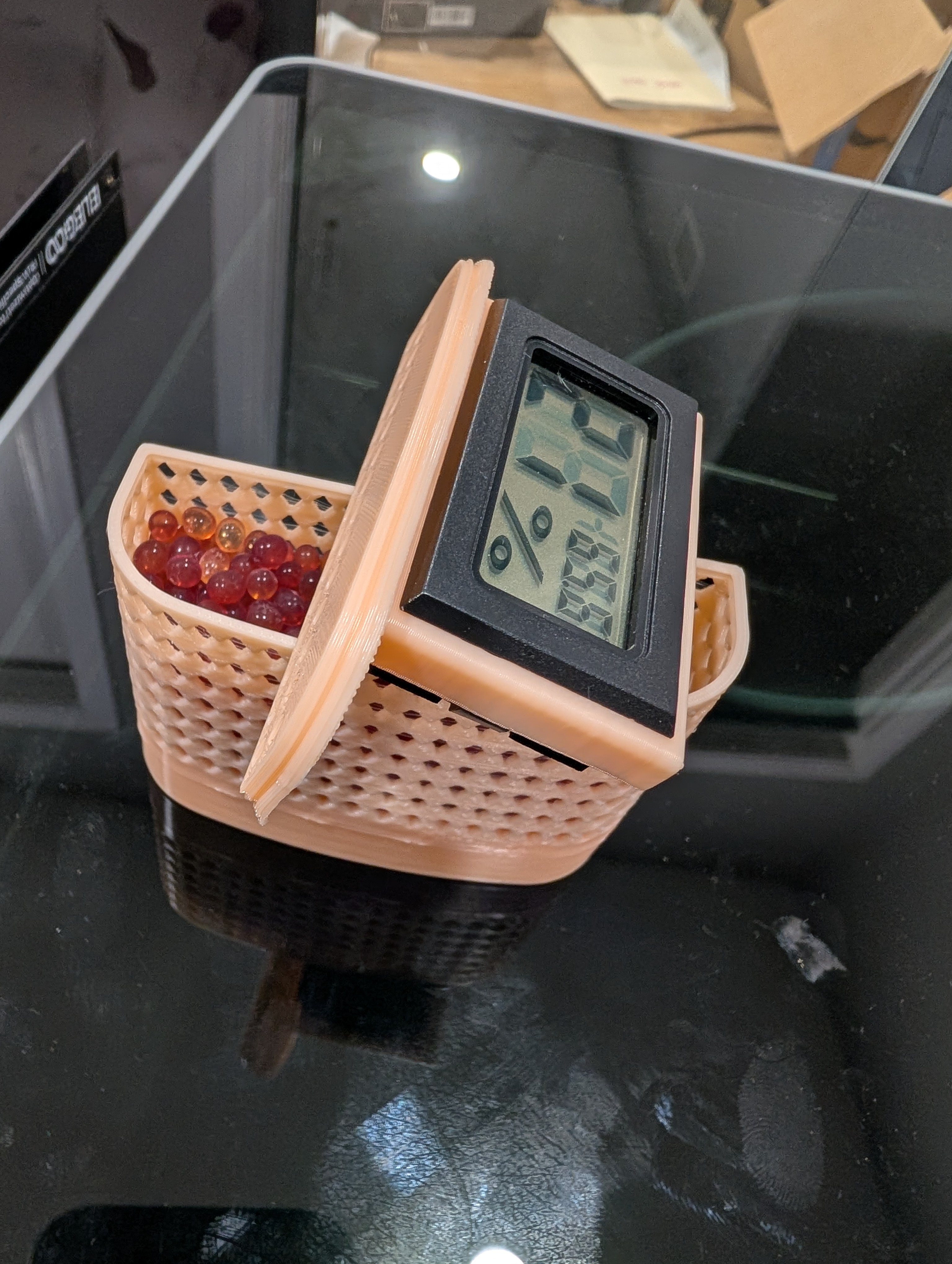 Cái này để gắn vào đế lớn hơn của Shigeer trên hộp đựng ngũ cốc khô ultimate. Giúp bảo quản vật liệu in 3D của bạn khô ráo và tránh ẩm mốc.