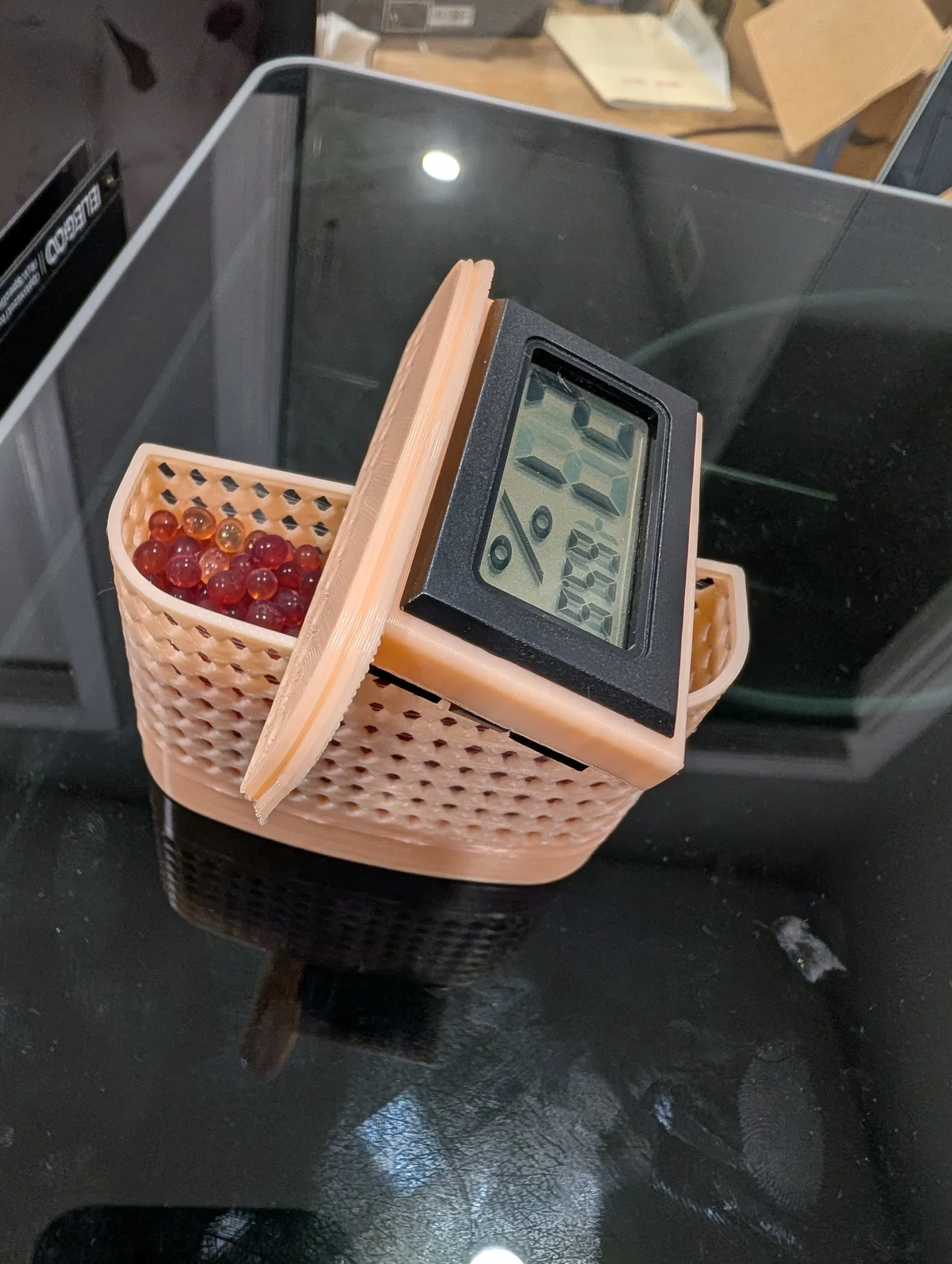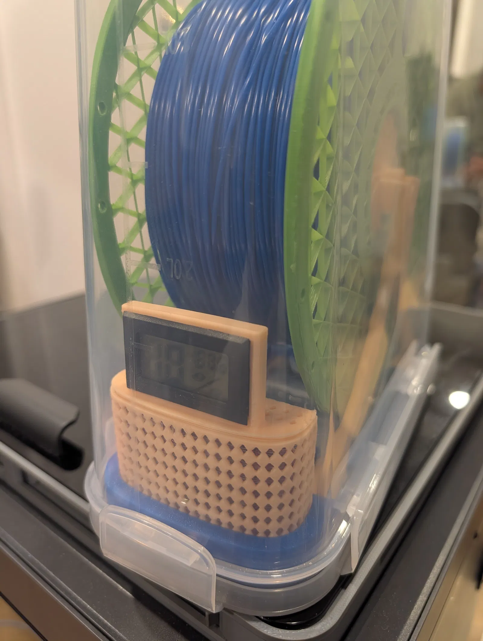 Khuôn giữ ẩm và đo độ ẩm này được thiết kế để gắn vào đáy của hộp đựng ngũ cốc khô ultimate, giúp bảo quản vật liệu in 3D của bạn khỏi ẩm mốc. Rất tiện lợi cho anh em dùng PLA nhé!
