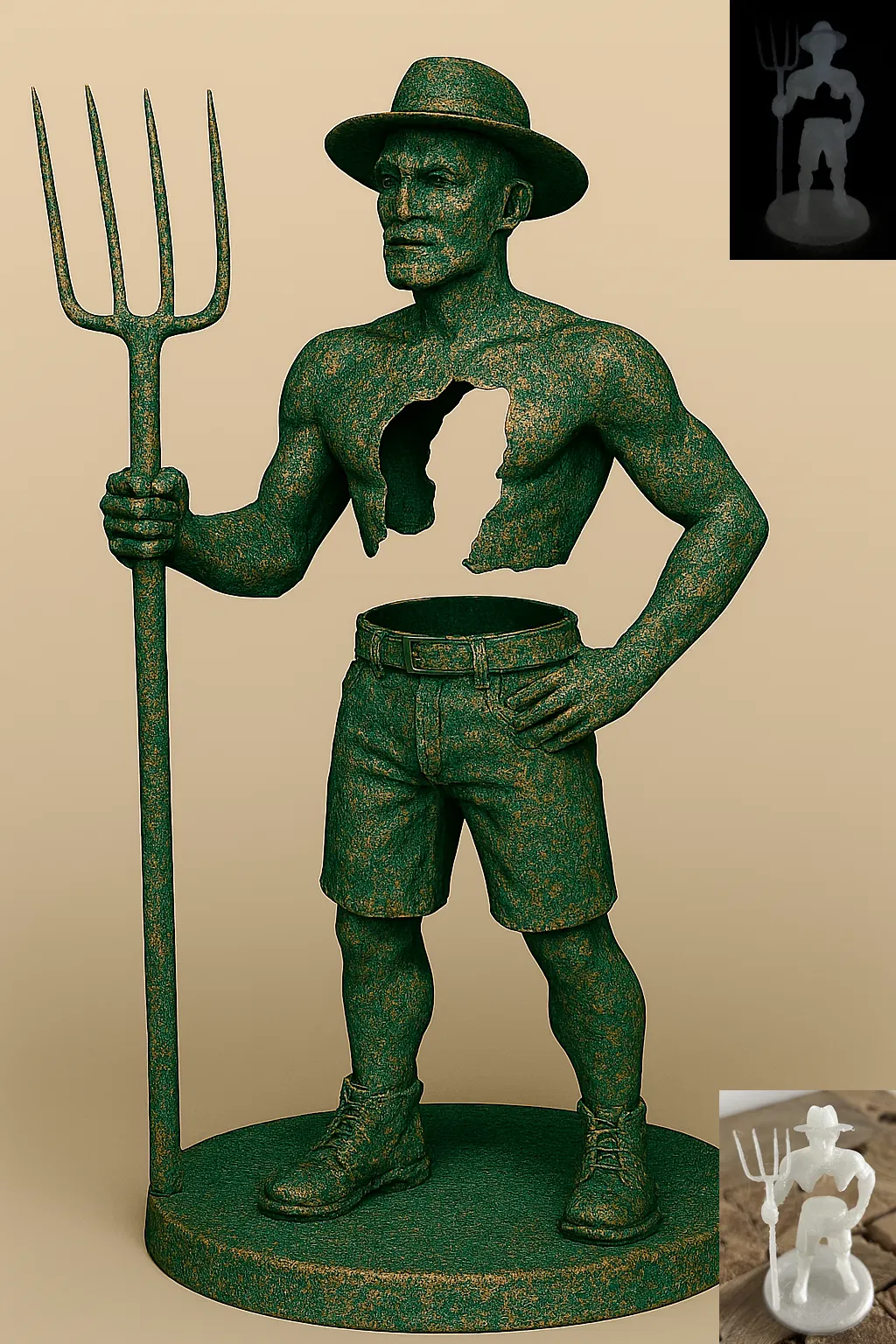 Tượng Người Nông Dân là một tác phẩm điêu khắc 3D lấy cảm hứng từ nghệ thuật của Bruno Catalano, đặc biệt là series The Travelers. Đây là một mô hình trang trí độc đáo, mang phong cách nghệ thuật đương đại, rất thích hợp để trưng bày trong không gian sống của bạn.