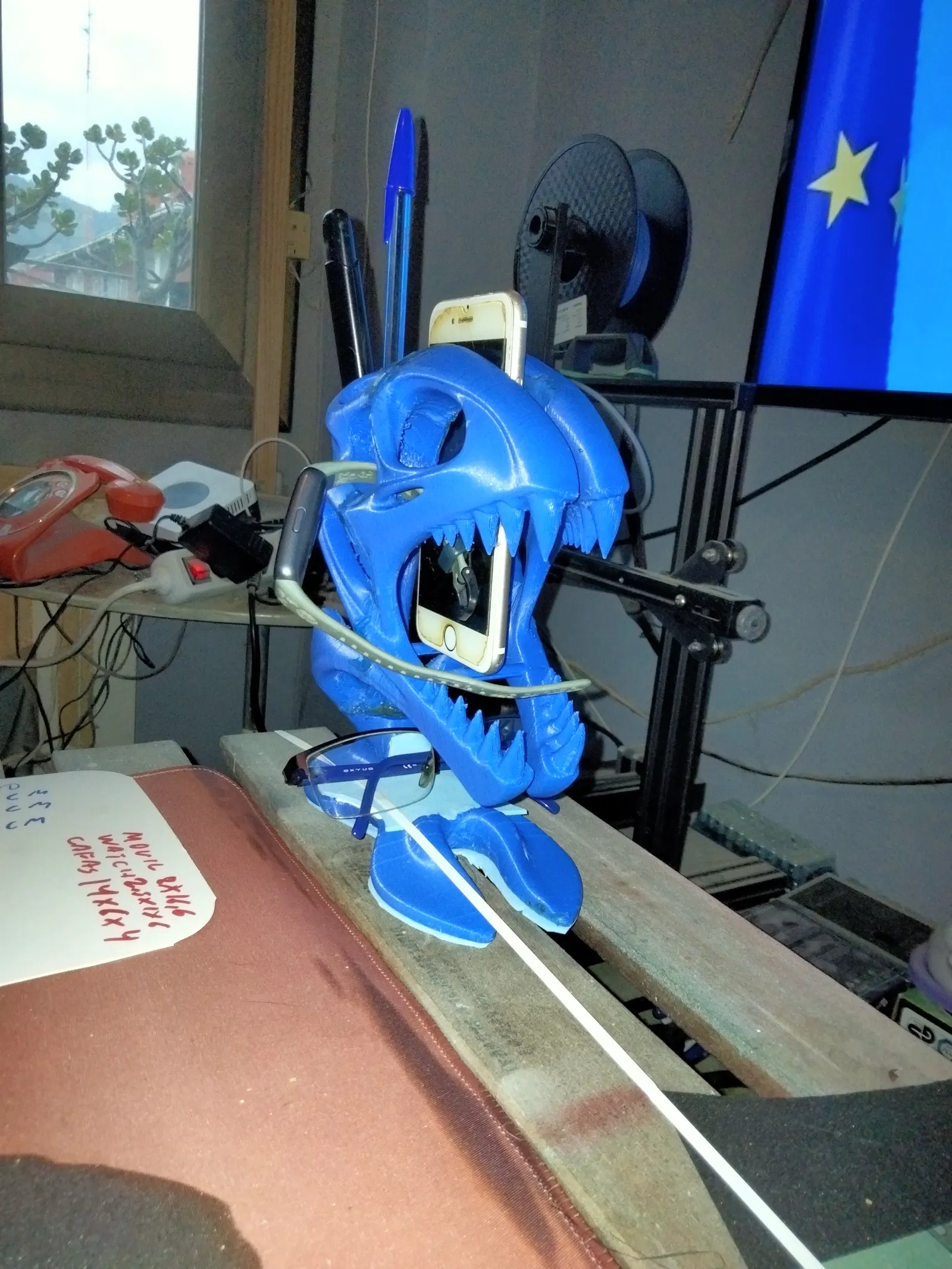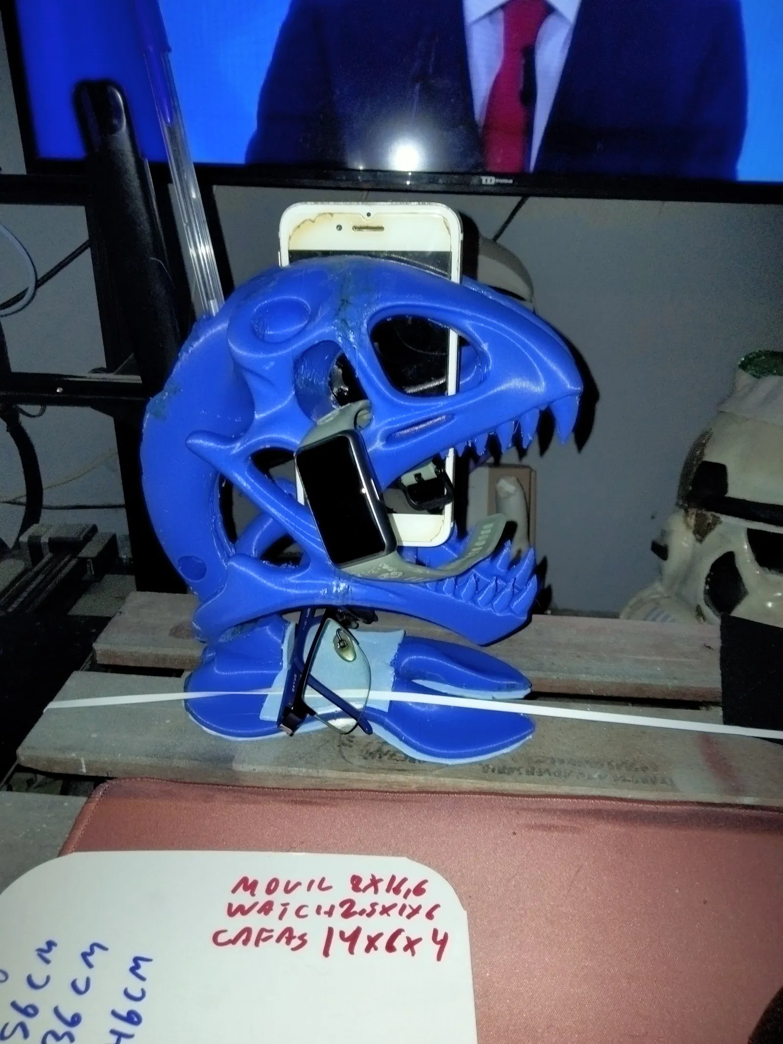 Tạo ra một vật dụng độc đáo với giá đỡ điện thoại, kính và đồng hồ thông minh hình đầu lâu khủng long thời tiền sử hư cấu. Mẫu in 3D này là sự kết hợp giữa sinh vật bò sát dưới nước tưởng tượng và chức năng thực tế, mang đến một điểm nhấn thú vị cho bàn làm việc hoặc không gian của bạn.