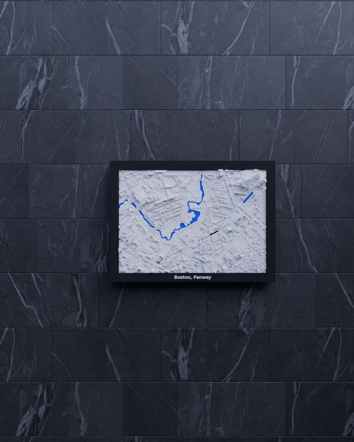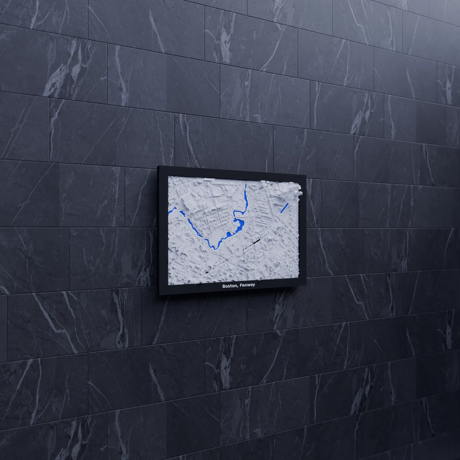 Mô hình địa hình 3D thu nhỏ của Boston, Fenway, Hoa Kỳ. Mô hình thu nhỏ này thể hiện cảnh quan địa lý với kích thước 170.5 mm x 119.5 mm, lý tưởng cho trang trí hoặc giáo dục.