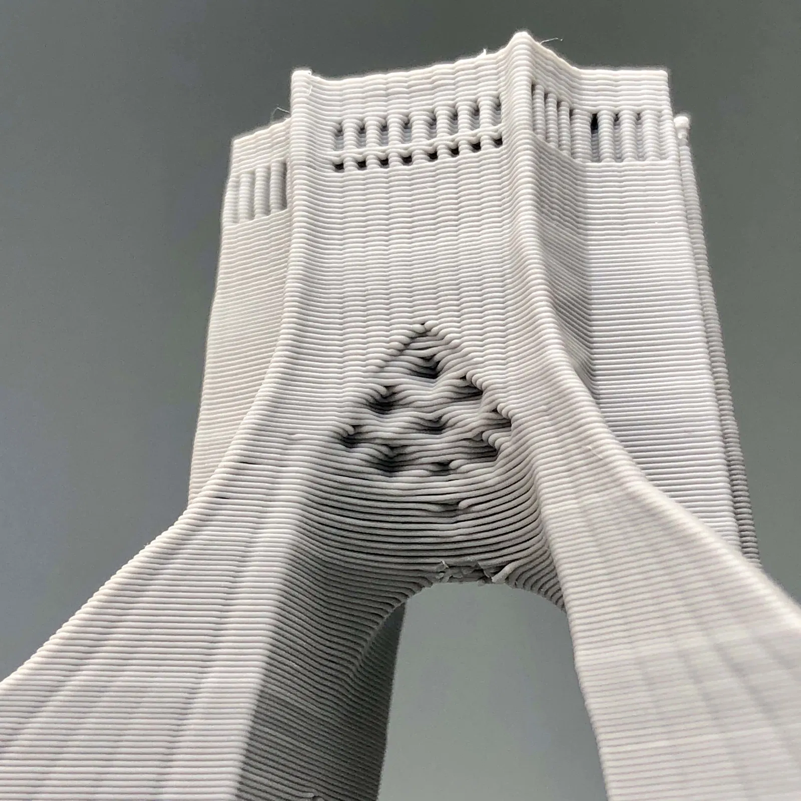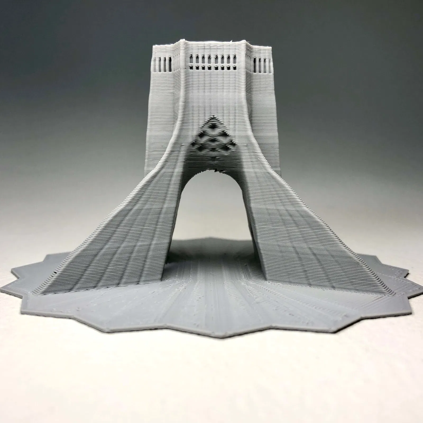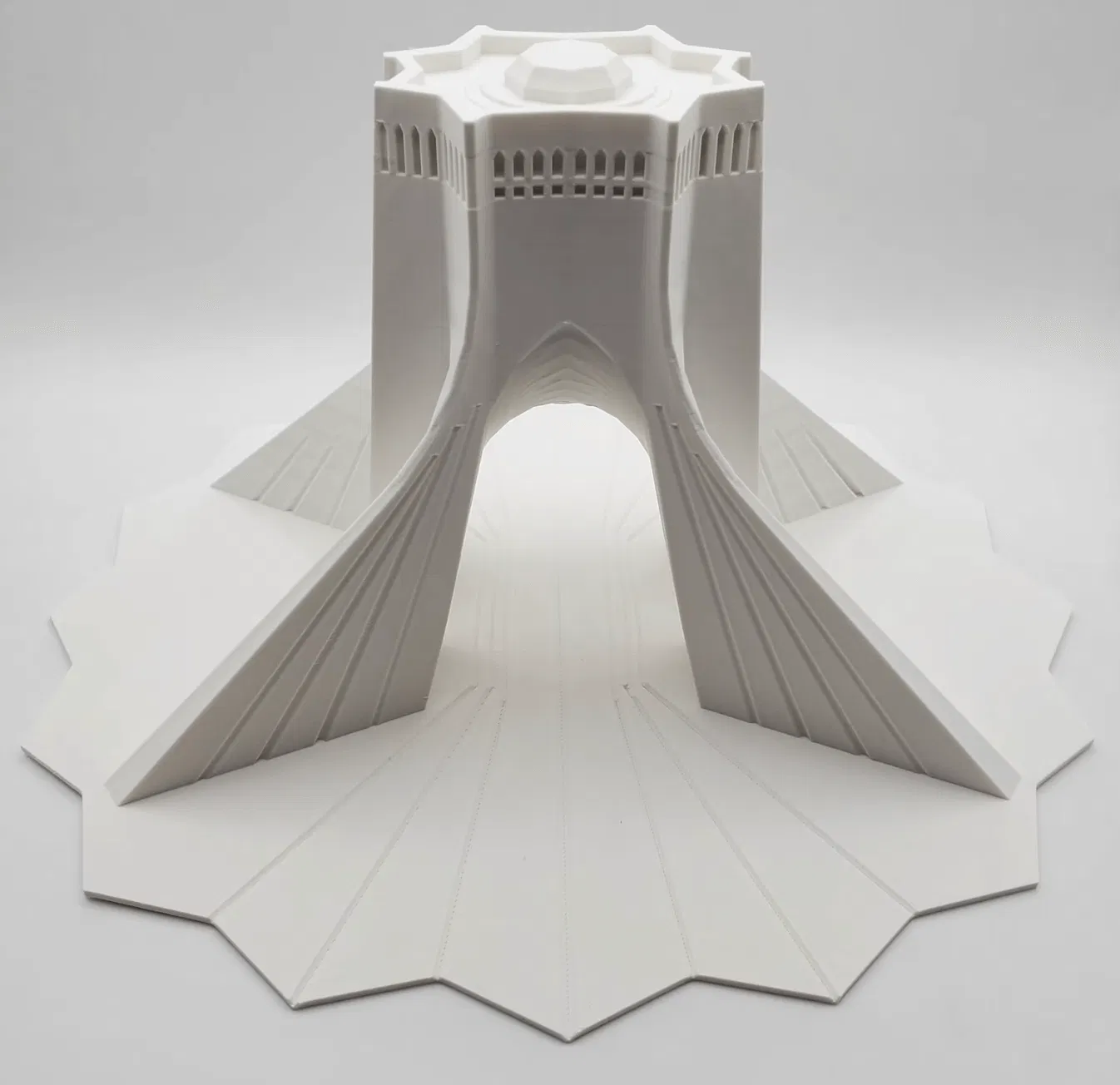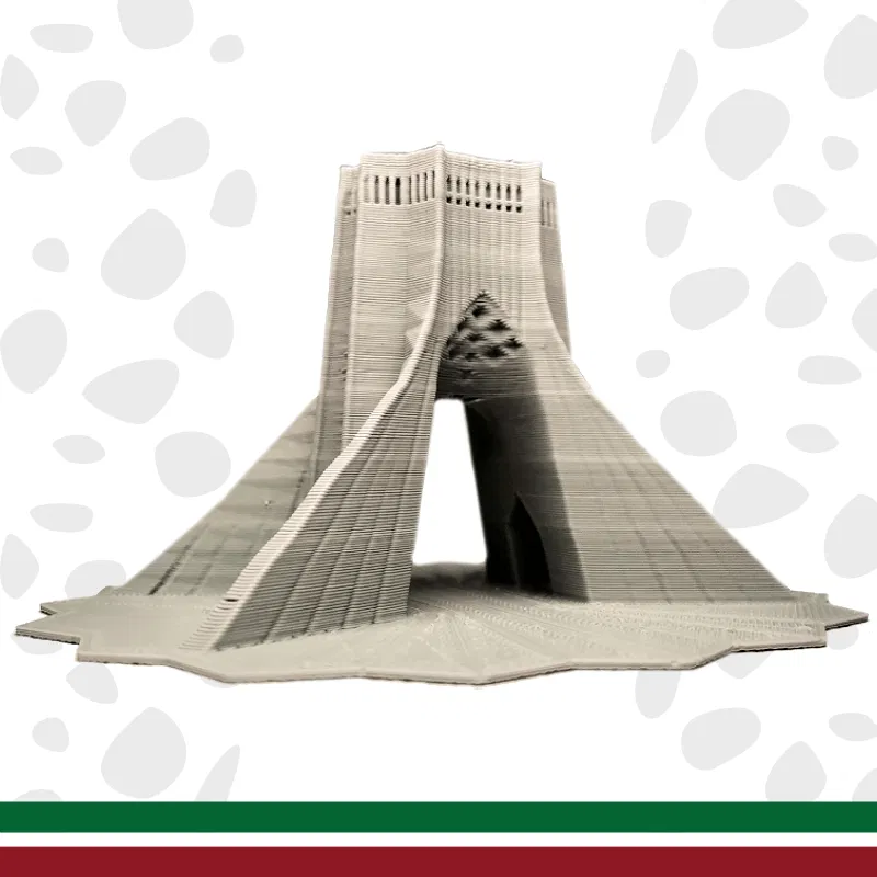 Mô hình thu nhỏ Tháp Azadi dễ in, một địa danh nổi tiếng của Tehran, Iran. Không cần hỗ trợ. Mô hình được thiết kế tỉ mỉ bởi MiniWorld 3D như một sự tôn vinh văn hóa Iran.