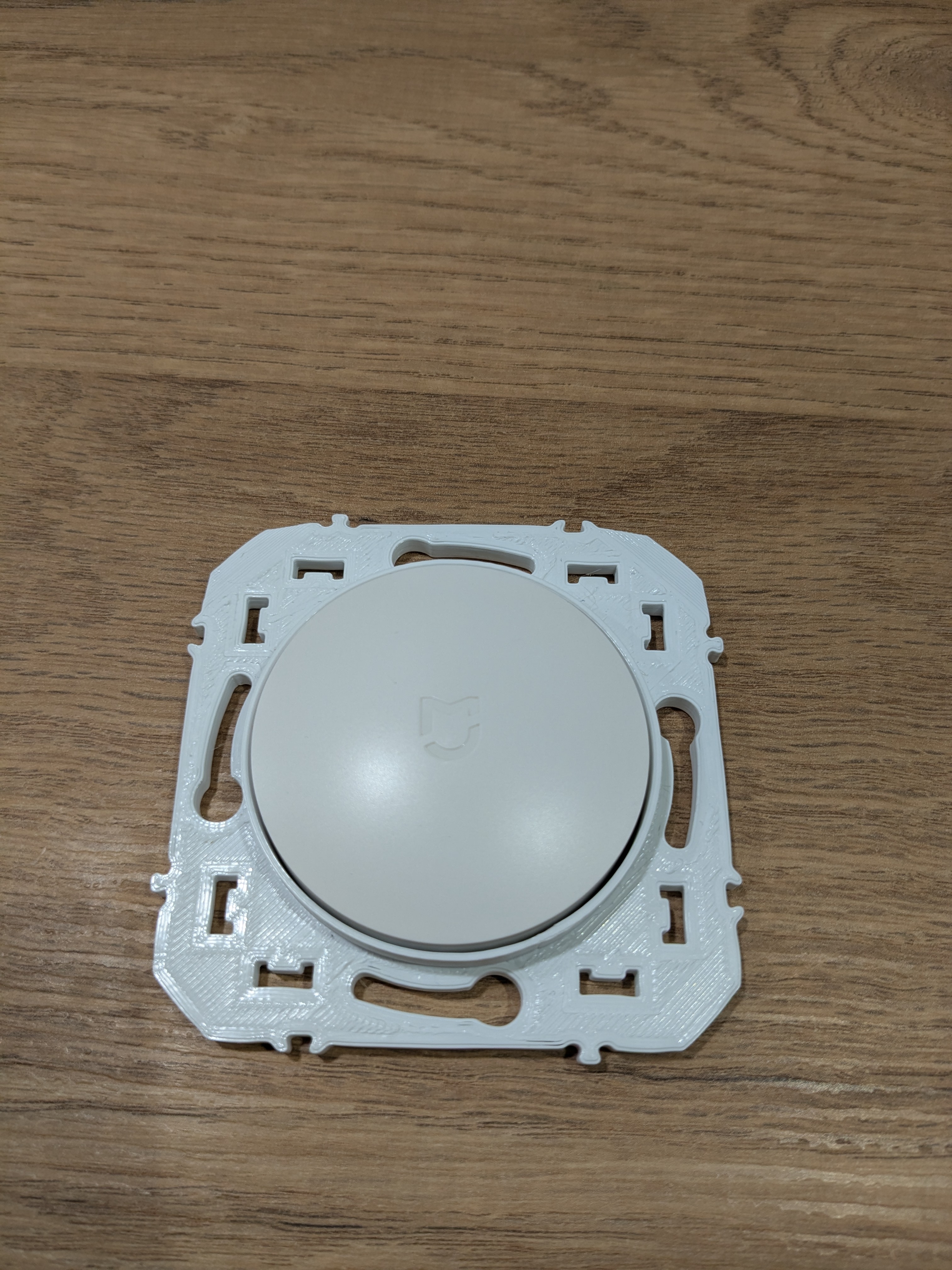 Bản in 3D tích hợp nút bấm công tắc thông minh Xiaomi Mijia vào hệ thống Legrand Dooxie. Bạn cần in cả hai file và có thể xoay công tắc để lấy pin ra dễ dàng.