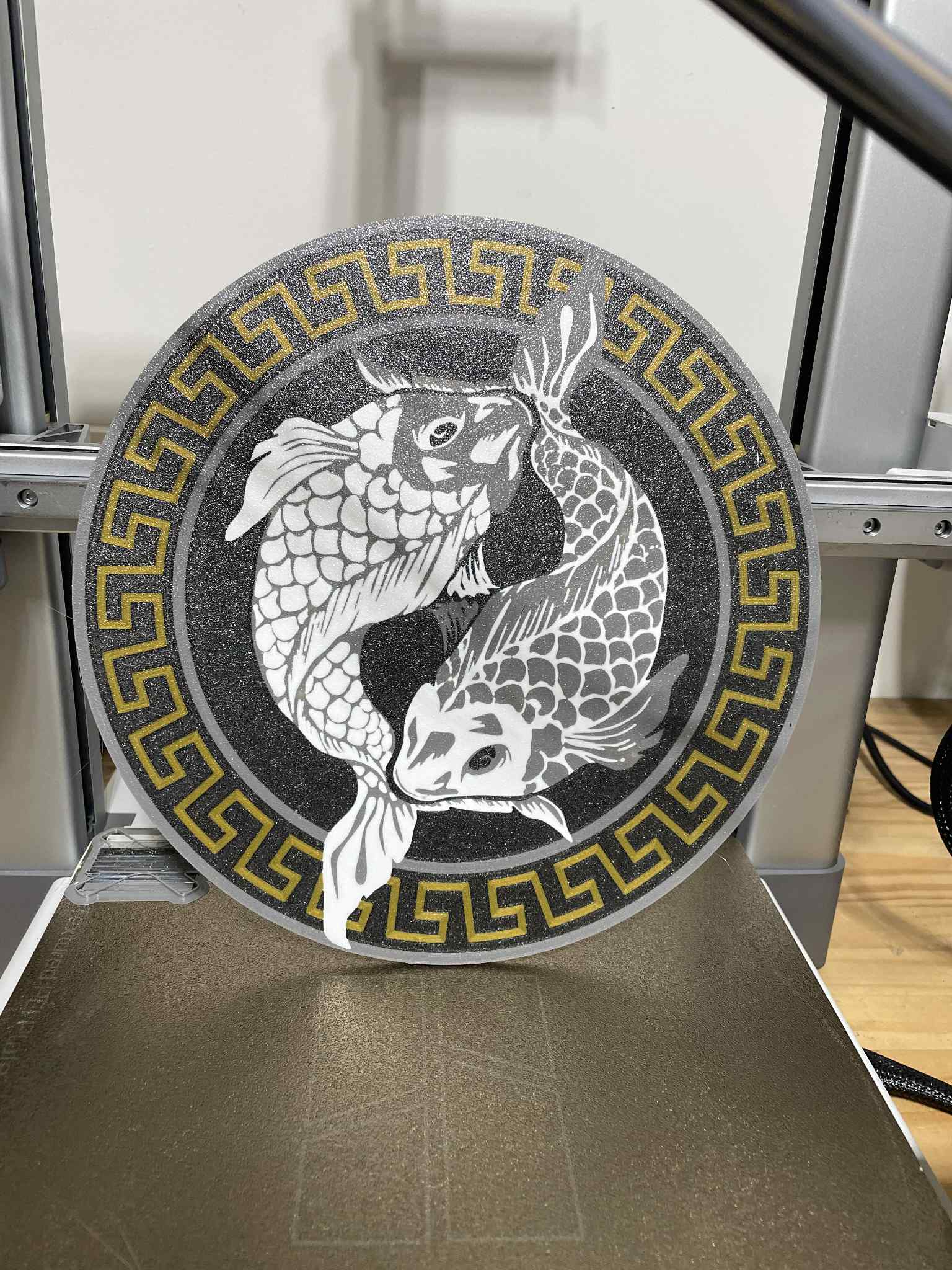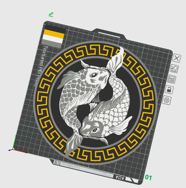 Tạo điểm nhấn cho không gian của bạn với Đĩa Treo Tường 2D "Cá chép Âm Dương" 4 màu. Sản phẩm này cần máy in có MMU hoặc AMS, in úp mặt xuống với độ cao lớp 0.12mm. Tui có kèm file gcode cho máy BambuLab A1 luôn nha. Chúc mọi người in vui vẻ!