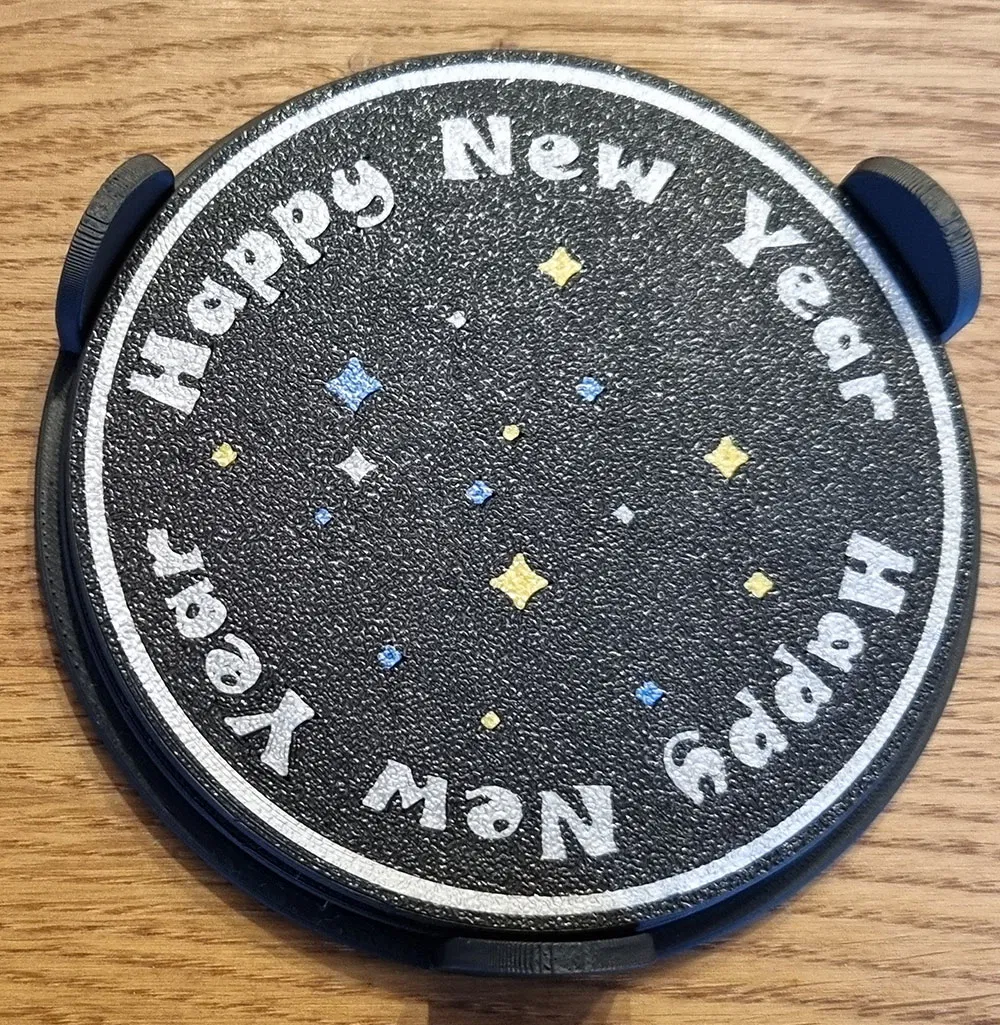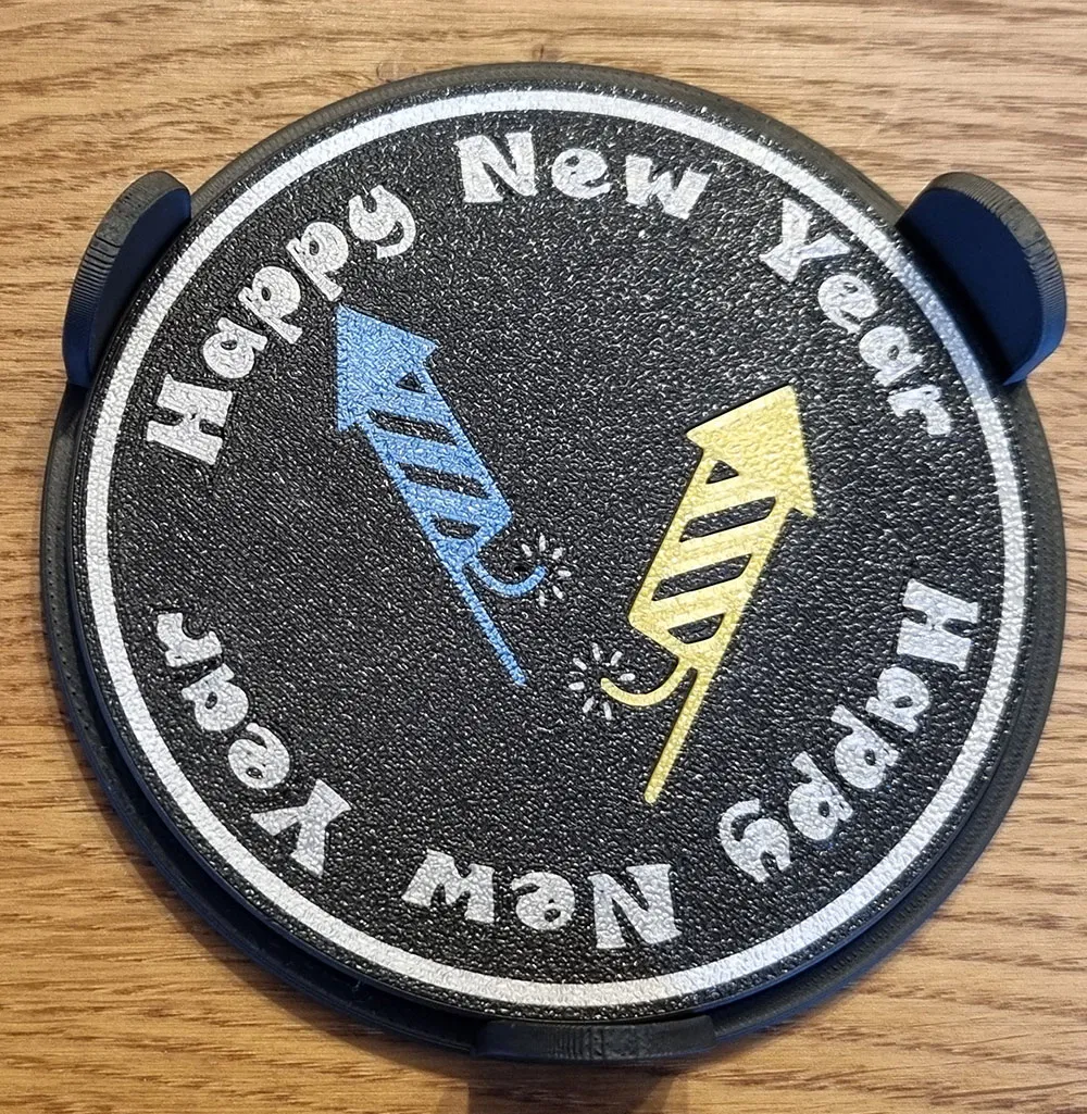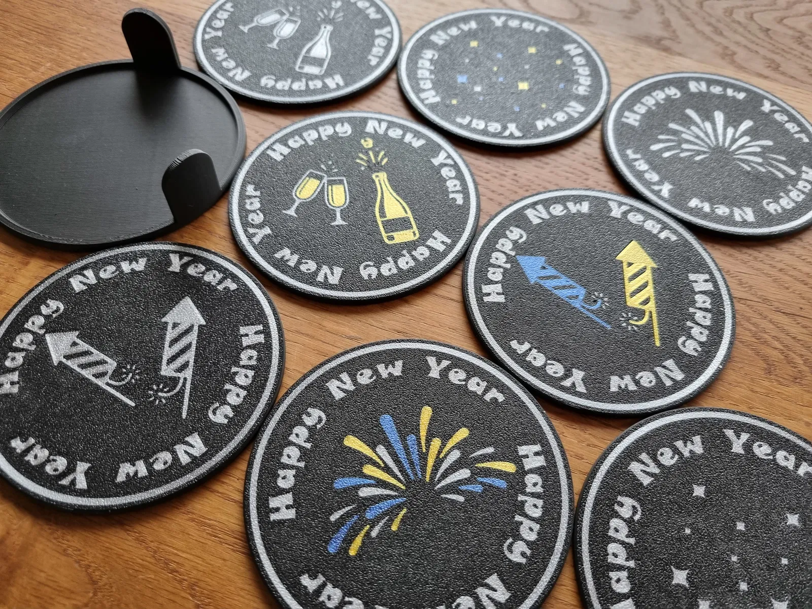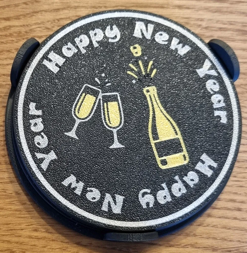 Chào đón Năm Mới với bộ ly tách độc đáo gồm 4 mẫu "Chúc Mừng Năm Mới" và 3 đế đựng (cho 4, 6, 8 ly). In mặt úp xuống để có chi tiết sắc nét. Có thể in 2 hoặc 4 màu, rất thích hợp làm quà tặng mùa lễ hội.