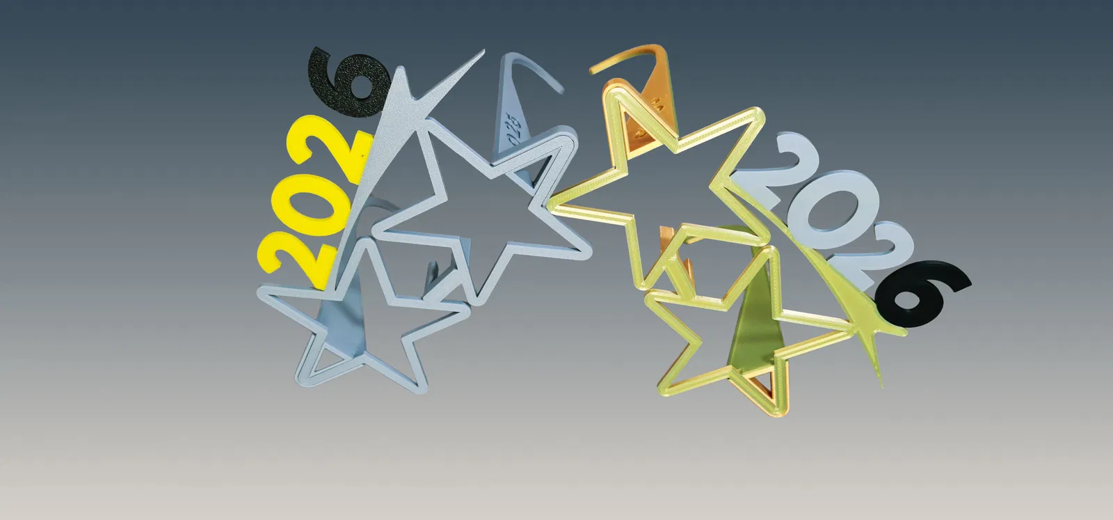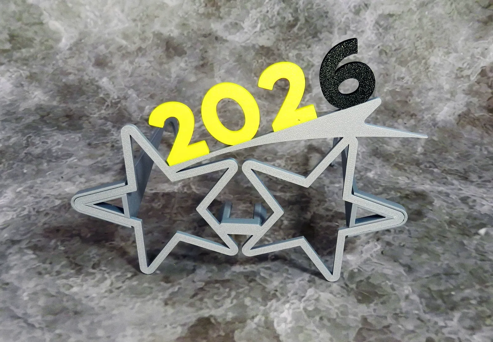 Kiểu kính đón Giao Thừa "2026" nguyên bản được thiết kế hình ngôi sao đôi, thích hợp cho các buổi tiệc mừng năm mới, lễ hội hoặc các buổi chụp hình sáng tạo.