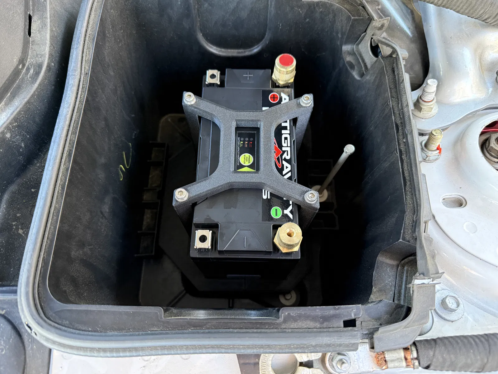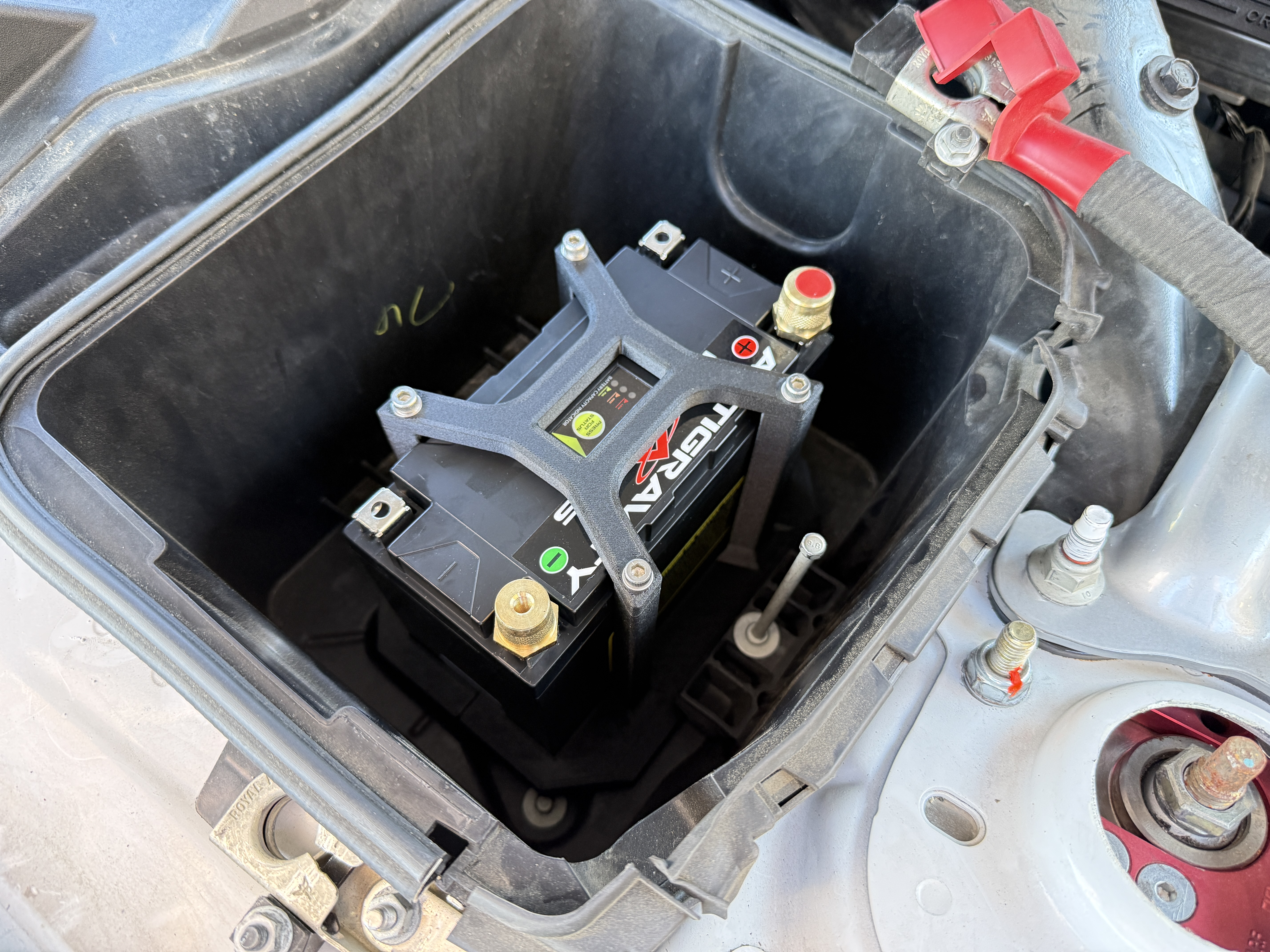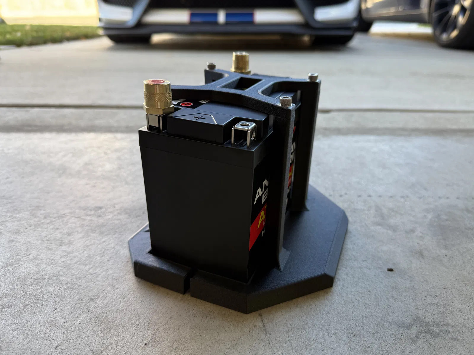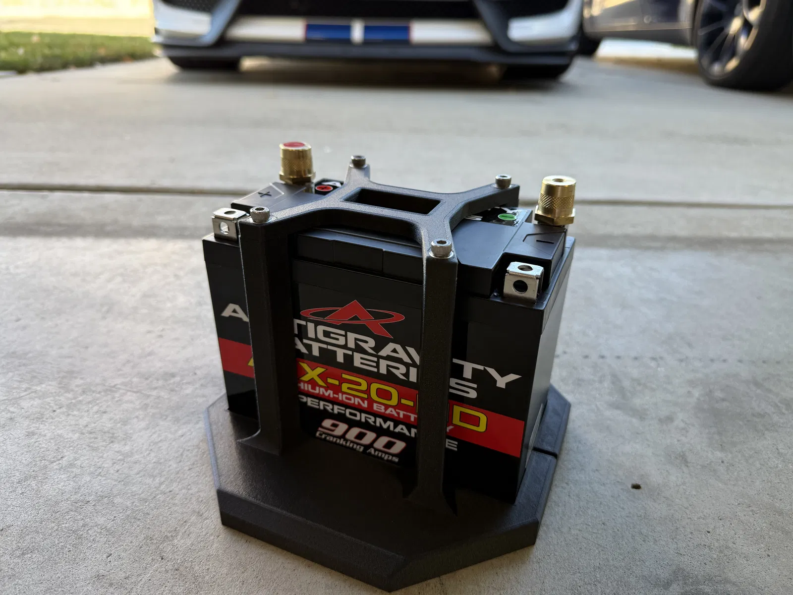 Tui bực mình vì cái bình ắc quy zin trên chiếc Mustang GT350R 2018 của tui có cường độ dòng khởi động thấp quá nên tui đã đặt mua bình ắc quy lithium phosphate Antigravity ATX20-HD có chỉ số CCA cao hơn nhiều và khối lượng nhẹ hơn đáng kể. Vì ATX20-HD có kích thước nhỏ hơn nhiều so với bình 96R hoặc 99R zin, nên cần có bộ adapter chuyển đổi. Bộ adapter duy nhất tui tìm thấy online, dù là in 3D hay loại khác, là của repop3d. Họ bán đế giữ in 3D của họ với giá 99 đô, và đã cười khẩy khi tui đề nghị mua file thiết kế của họ để tui tự in dùng cá nhân.