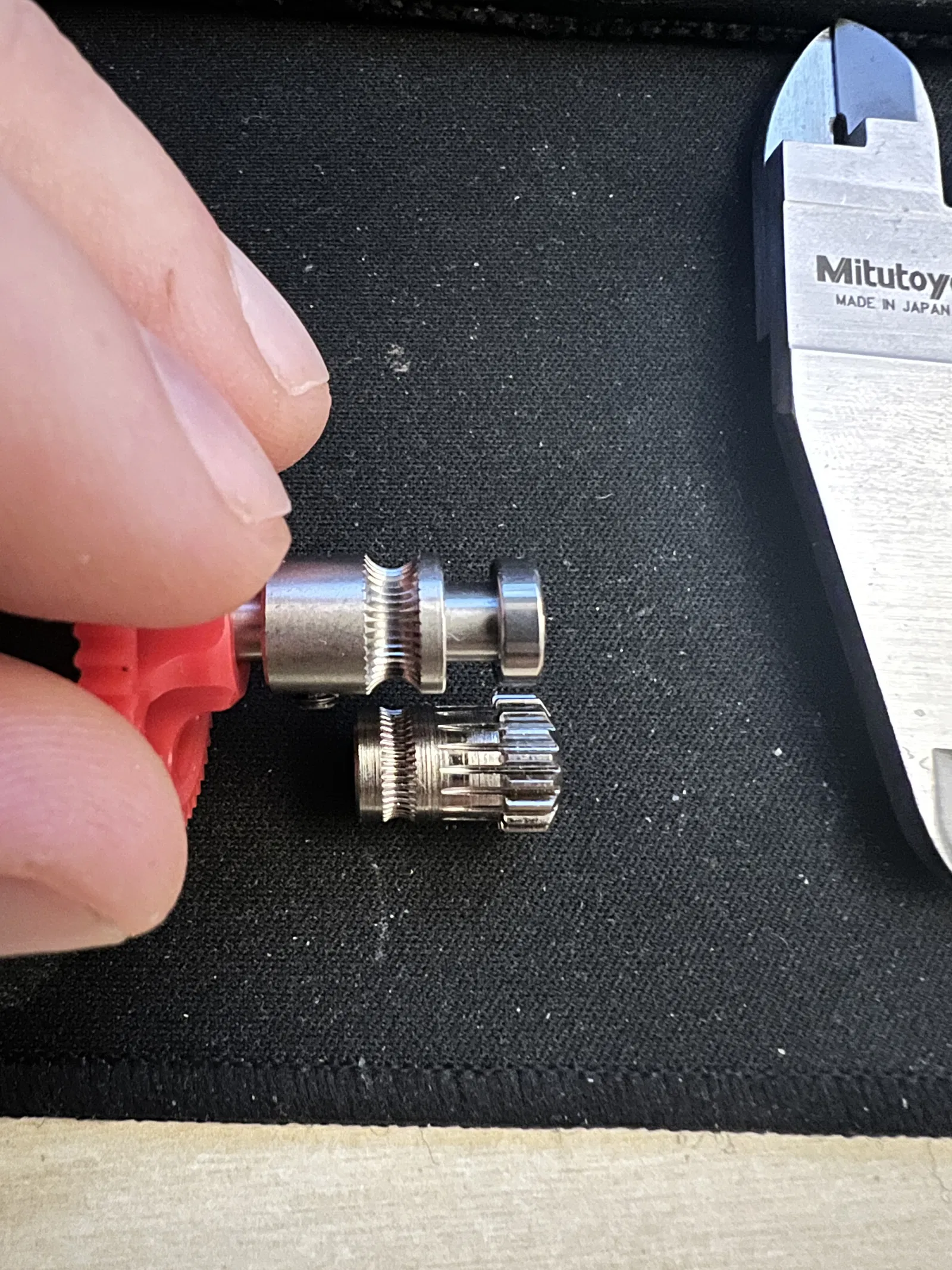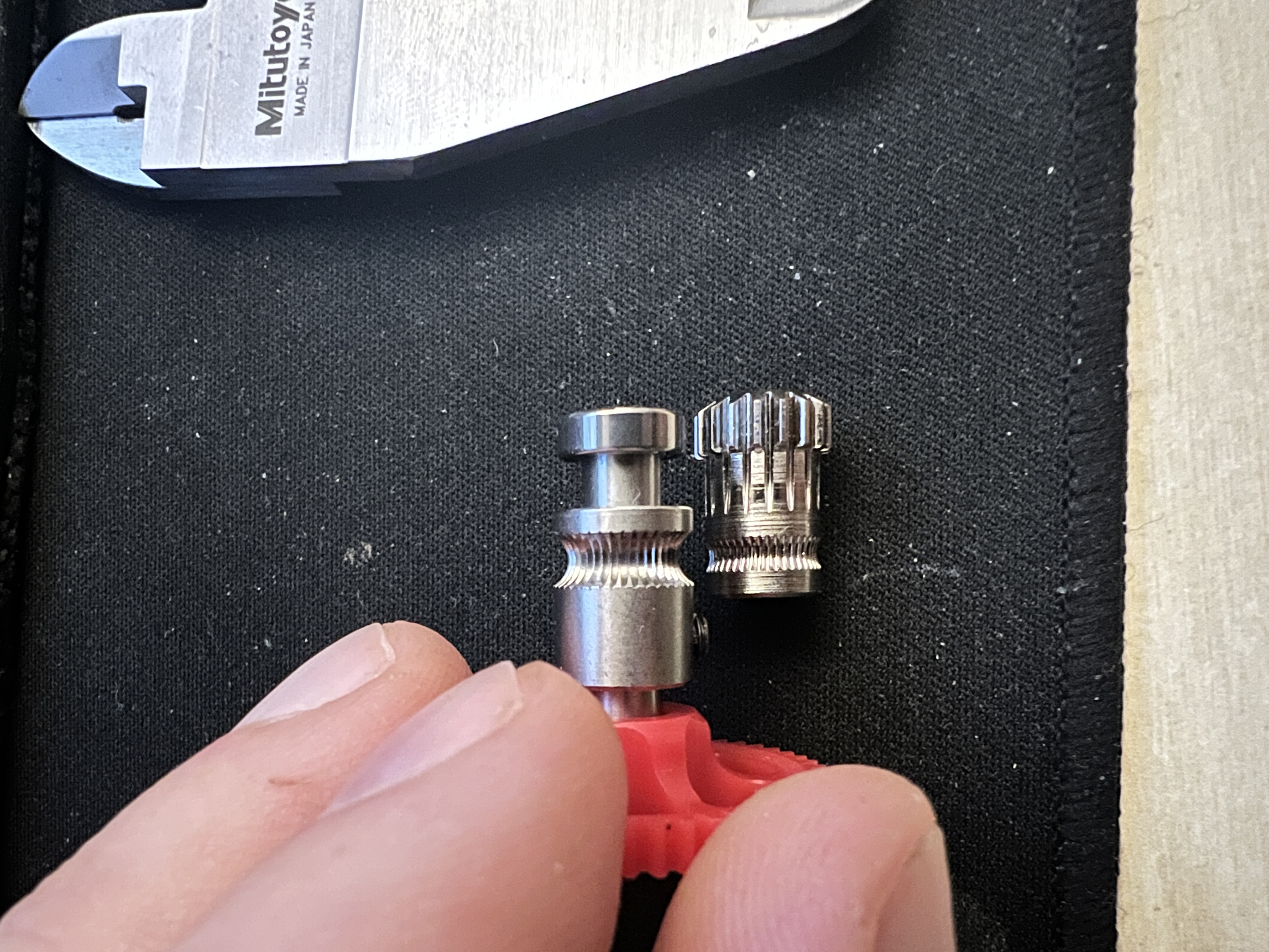 Khi đo, chiếc Bondtech RIDGA OEM của tui từ mô-đun đẩy WW mà tui thay hôm nay là 7.5mm tính từ đầu răng dây tóc trong khi MK8 chỉ có đường kính 7mm. TUY NHIÊN, răng trên bánh răng dẫn động MK8 trông có vẻ sâu hơn. Mặc dù về lý thuyết, rotation_distance gốc 4.45 nên giảm xuống 4.15, nhưng sau khi hiệu chỉnh thì nó nằm đâu đó giữa 4.01 và 4.05. Tui chốt ở "rotation_distance: 4.05".