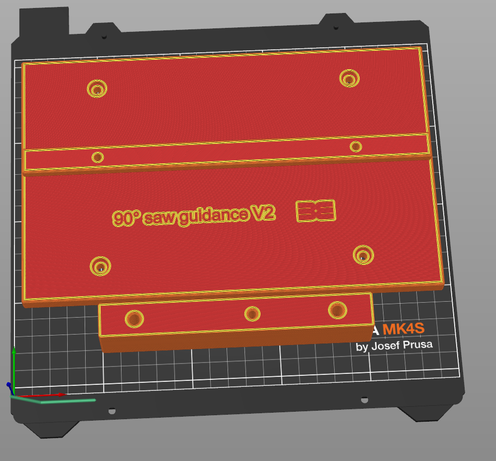 Dụng cụ giúp cắt góc 90 độ lặp lại một cách dễ dàng và chính xác. Chỉ cần căn chỉnh, cố định bằng kẹp ray và bắt đầu cưa. Tương thích với nhiều loại cưa, đặc biệt là Bosch GKS 18V-LI. Yêu cầu ốc M4x12 và tán nhiệt Ruthex M4x8.1. Sử dụng PLA sợi carbon hoặc vật liệu tương tự, đảm bảo filament khô để có kết quả tốt nhất.